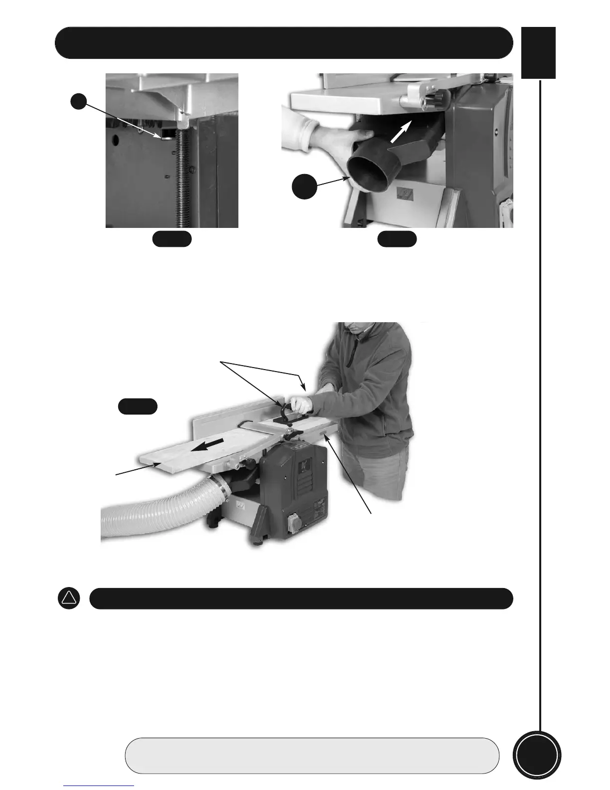 • Remove chips and splinters from the cutterblock, fixed and adjustable tables.