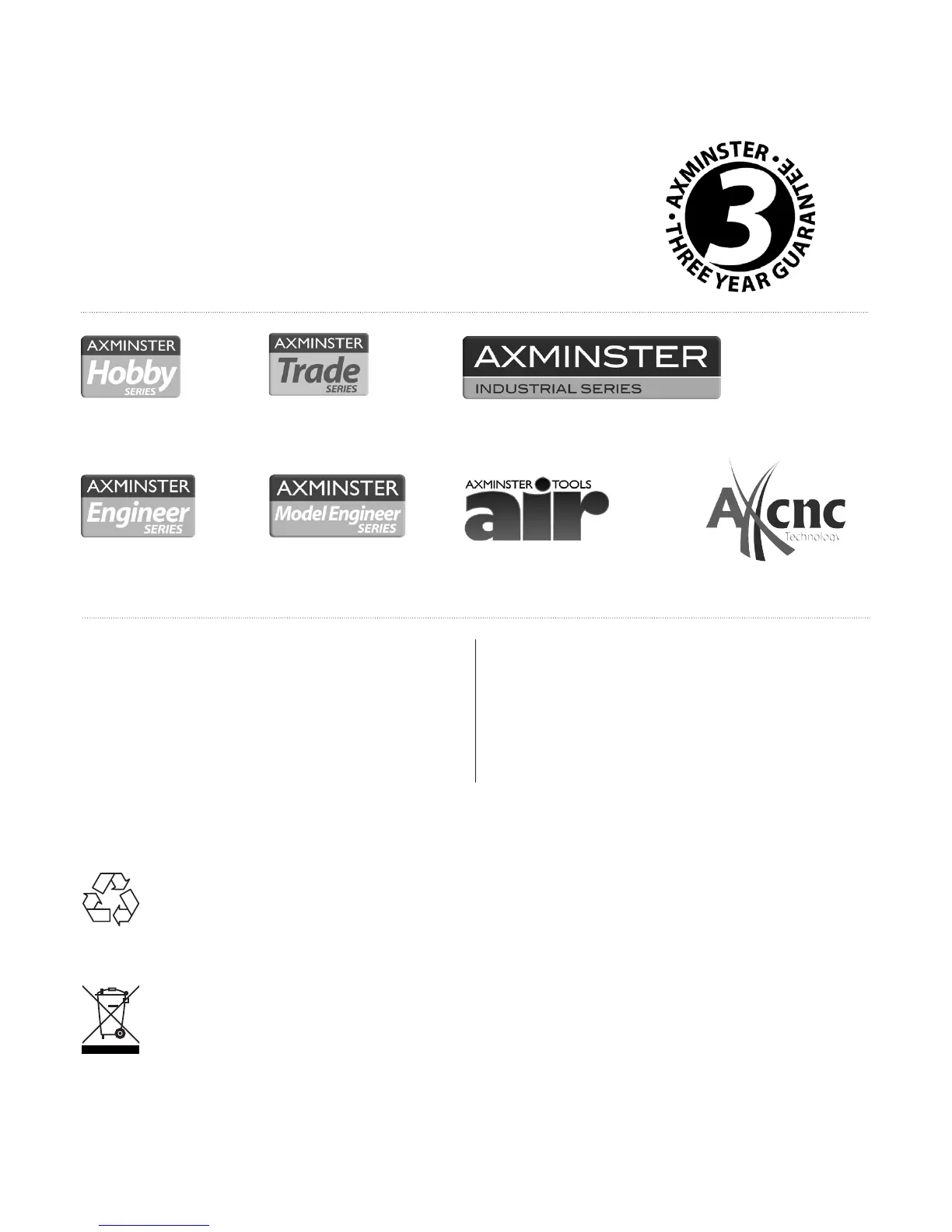 Free Three Year Guarantee on Axminster Hobby, Trade and Industrial Series woodworking and