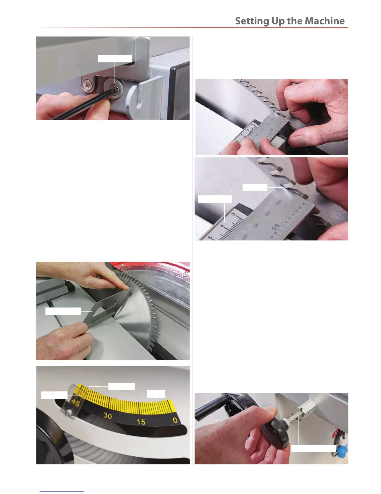 angle of the saw to 45˚degrees. Check that the index