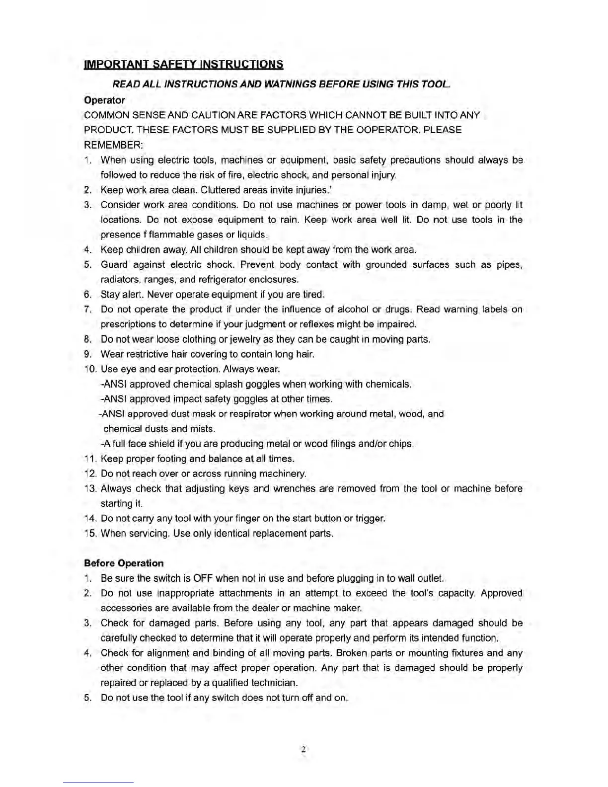 Axminster SIEG C4 - Safety Instructions; Operator; Before Operation