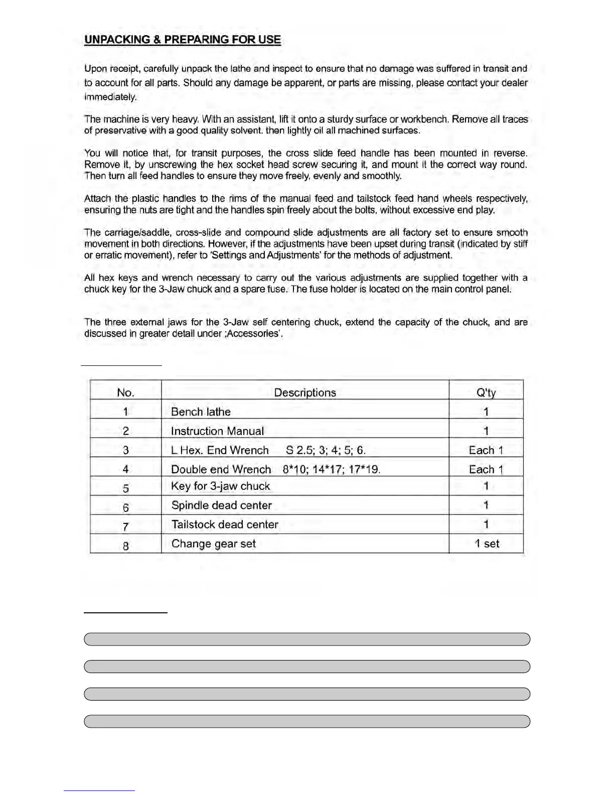 Axminster SIEG C4 - Unpacking & Preparing for Use; Packing List; Accessories