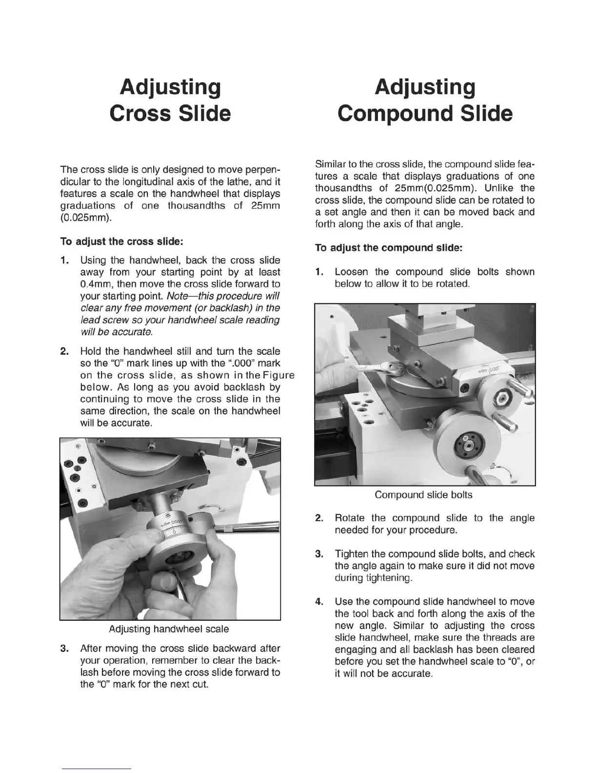 Axminster SIEG SC6 - Adjusting Cross Slide; Adjusting Compound Slide