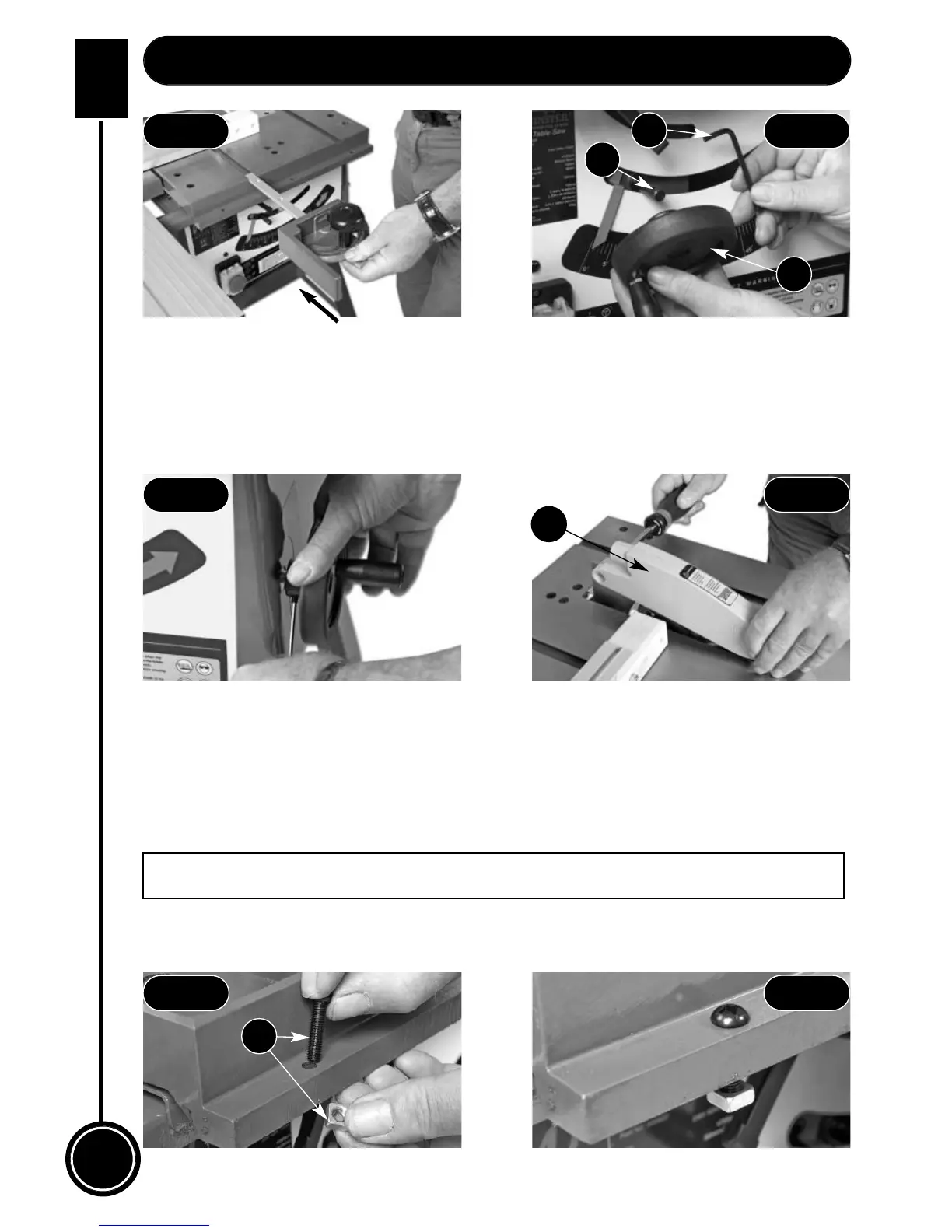 the screws into the three holes to the front and rear of the main table. Replace the nuts.