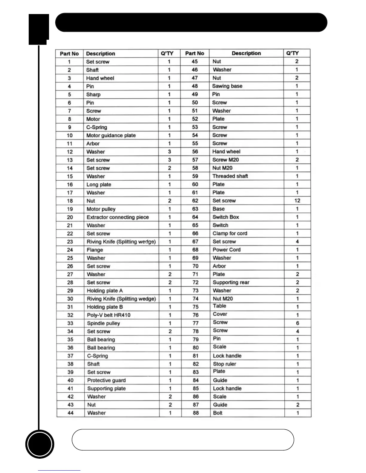 Axminster TS-200 - Comprehensive Parts List; Table Saw Parts List (1-44)