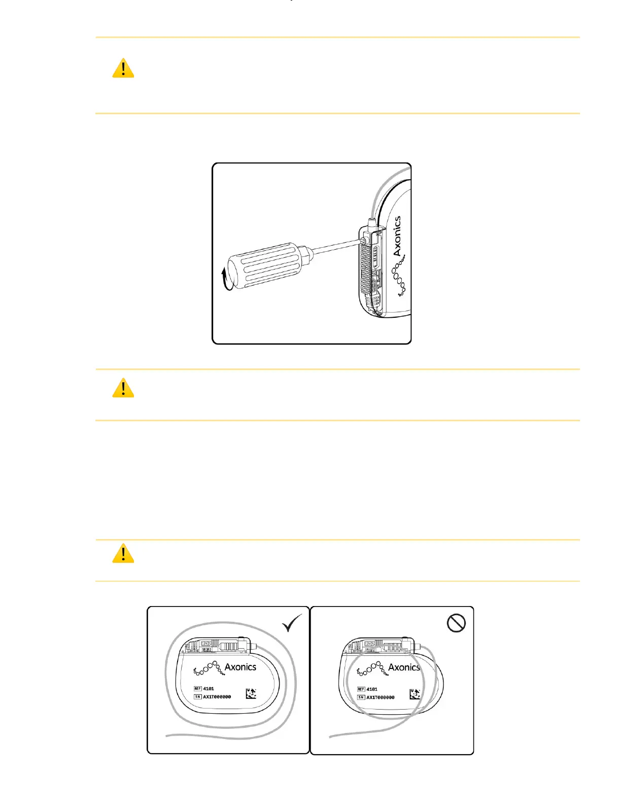 • Do not attempt to insert the lead into the Neurostimulator if the setscrew is not sufficiently