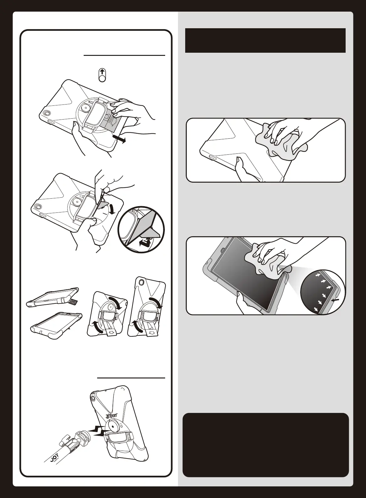 上の図のように、本製品のシリコンカバーを不織布で軽くたたいて拭