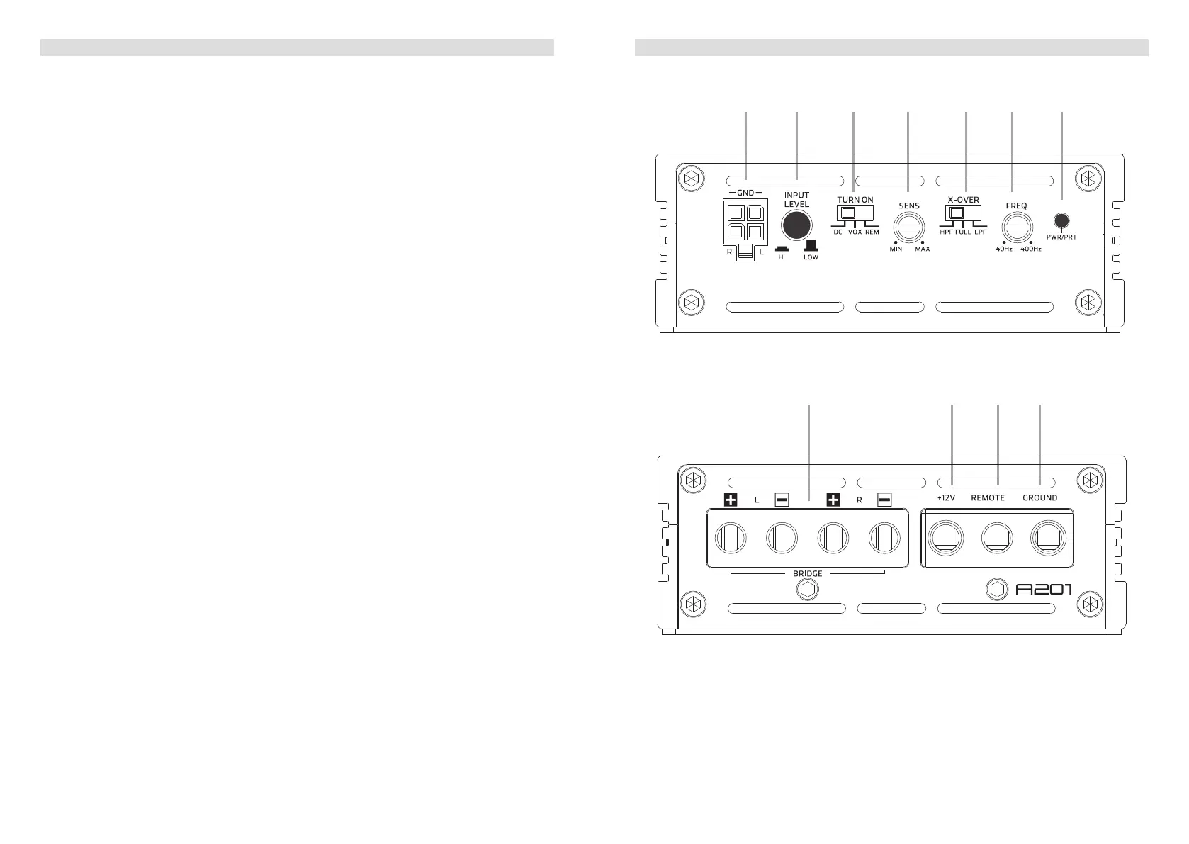 A201 ANSCHLÜSSE + BEDIENUNGSELEMENTE