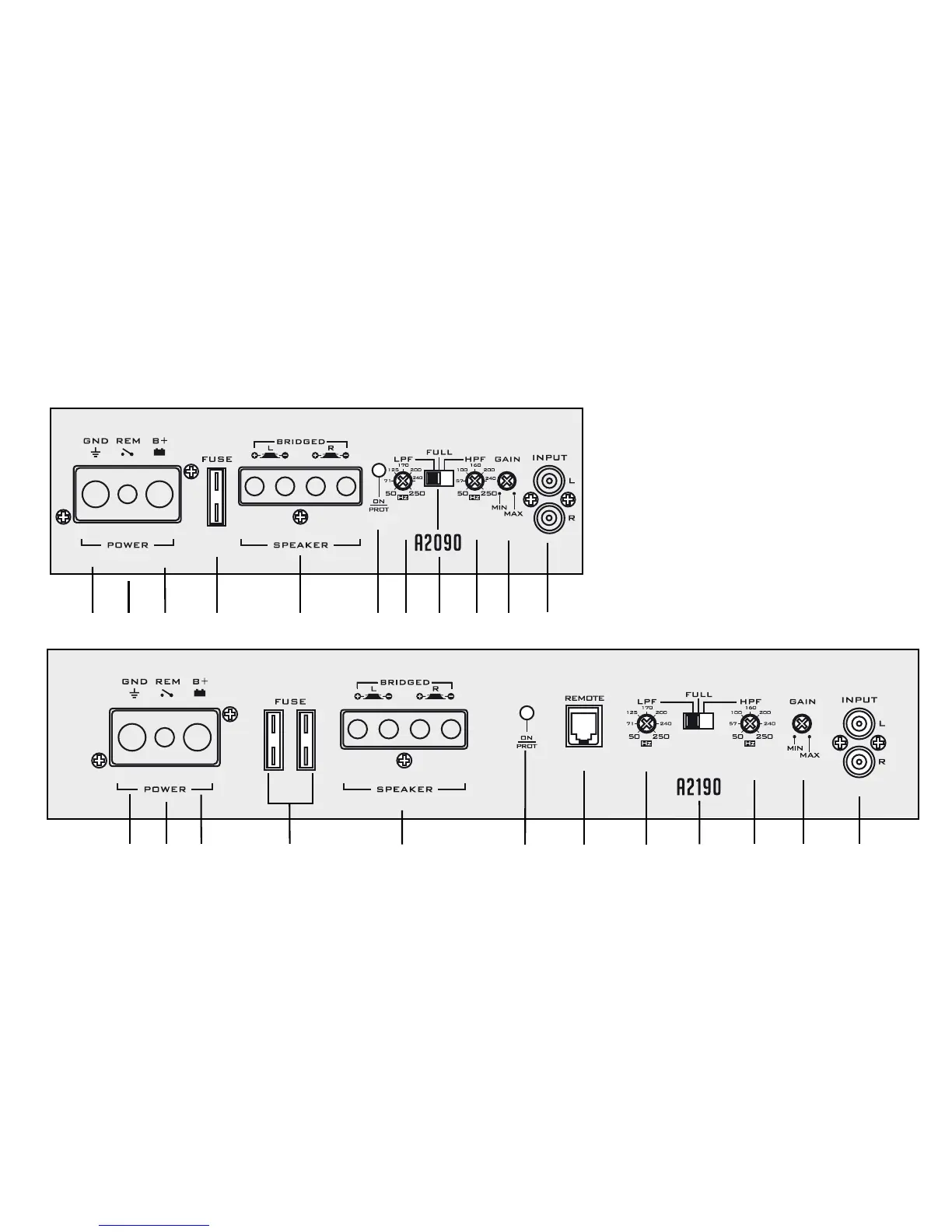 Anschlüsse & Bedienungselemente A2090/A2190