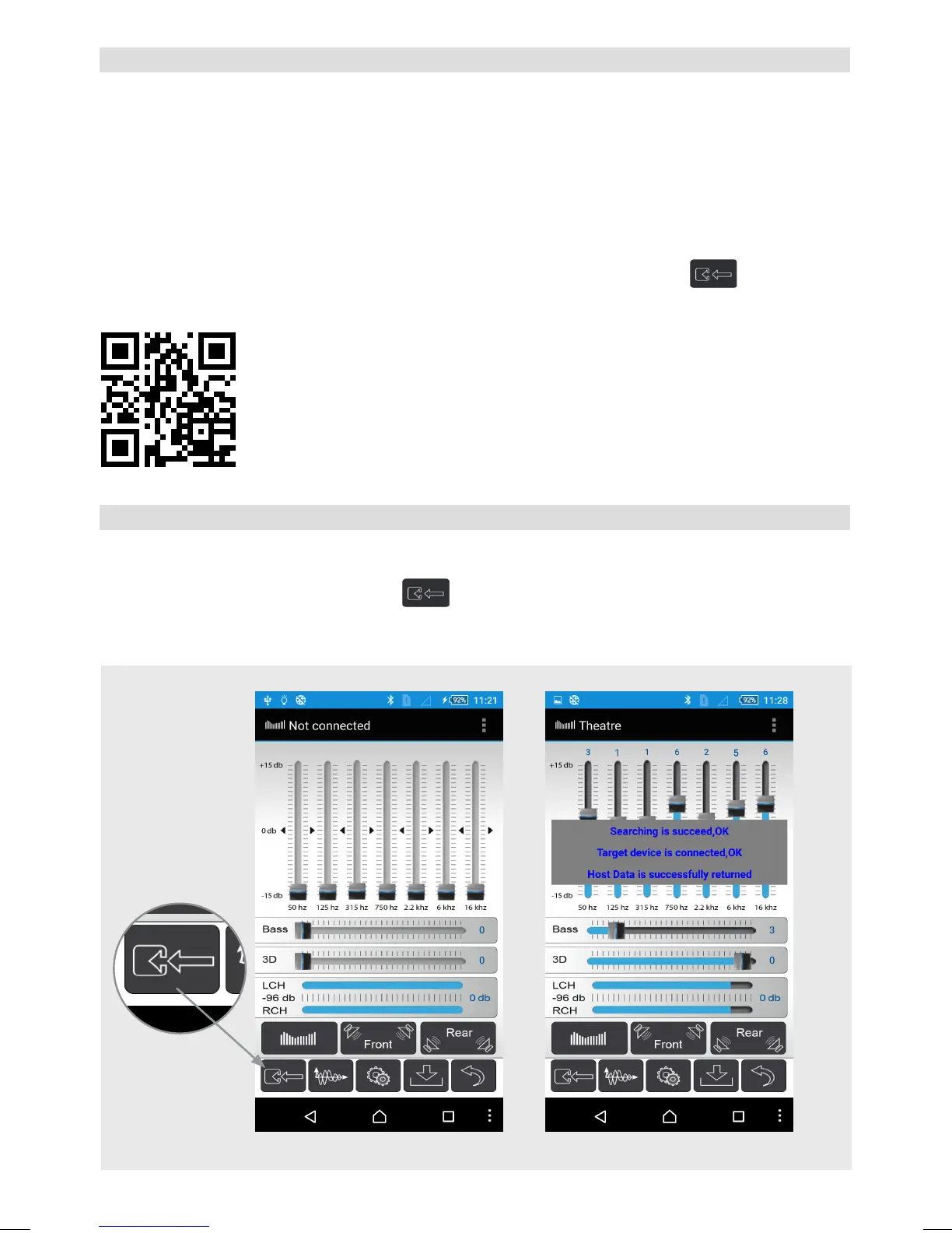 Nachdem sich die App erfolgreich verbunden hat, erscheint automatisch das EQ-Menü