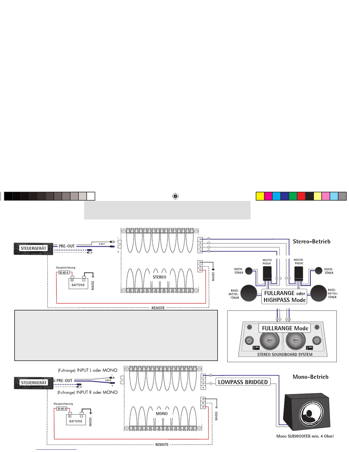 ● Auch bei Mono-Brücken-Betrieb müßen beide Eingänge (L&R) belegt sein