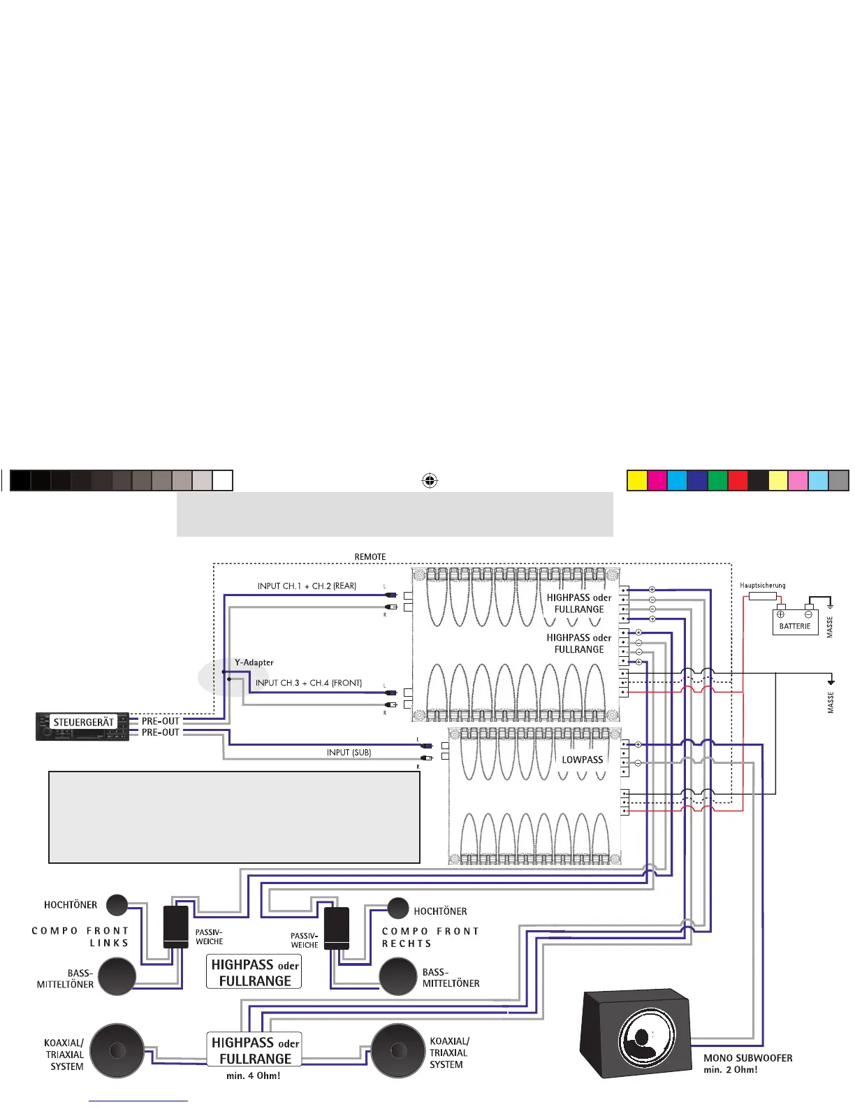 ● Min. Lautsprecher-Impedanz für C209/C409/C509 in Stereo Mode ist