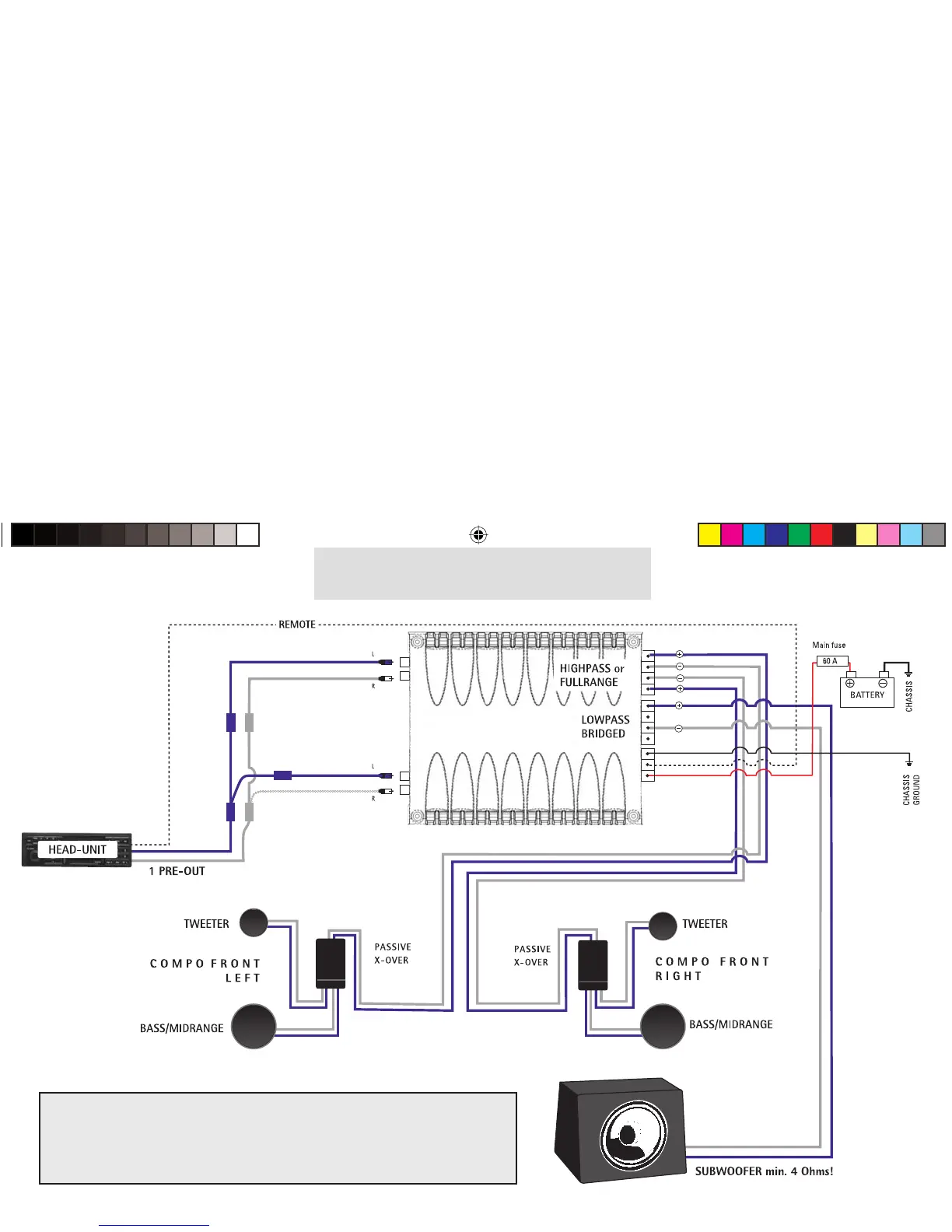 ● Min. speaker impedance all channels min. 2 Ohms!