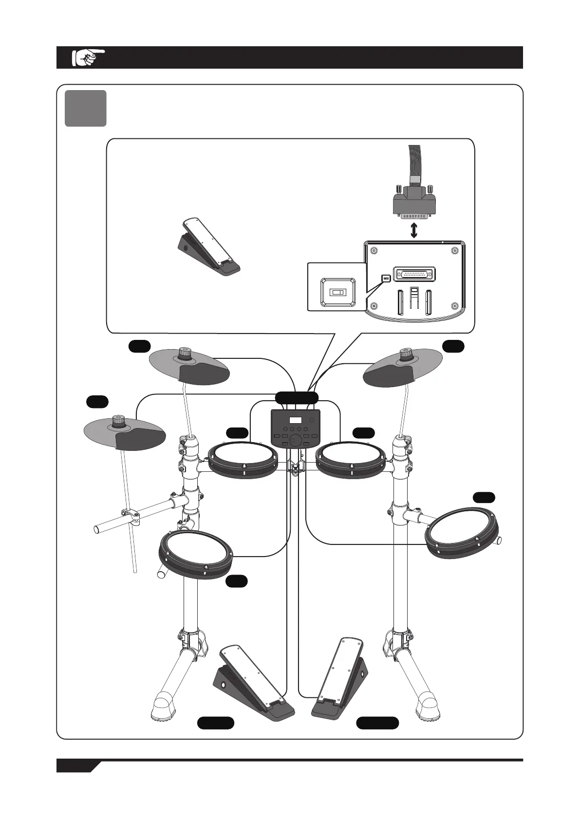 drum/cymbal is noted on the coloured cable end, use the diagram to connect the correct cable to