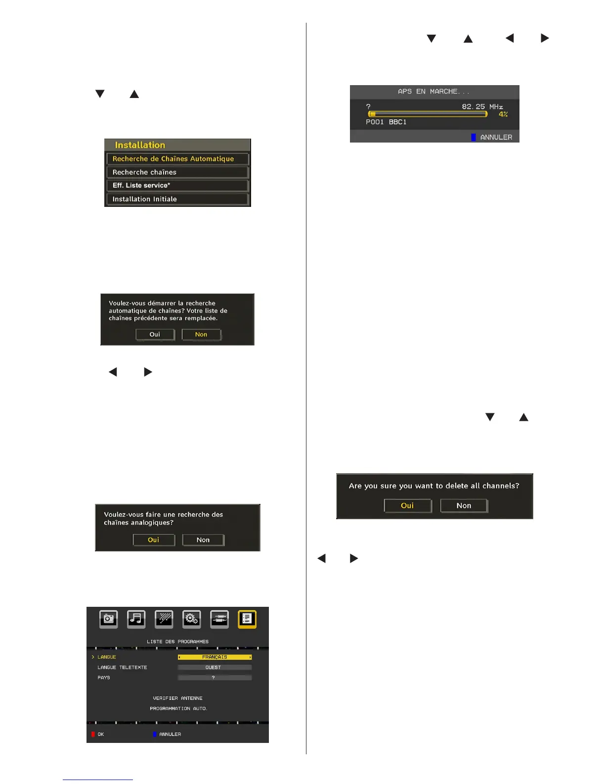 chaînes analogiques s’afche à l’écran: