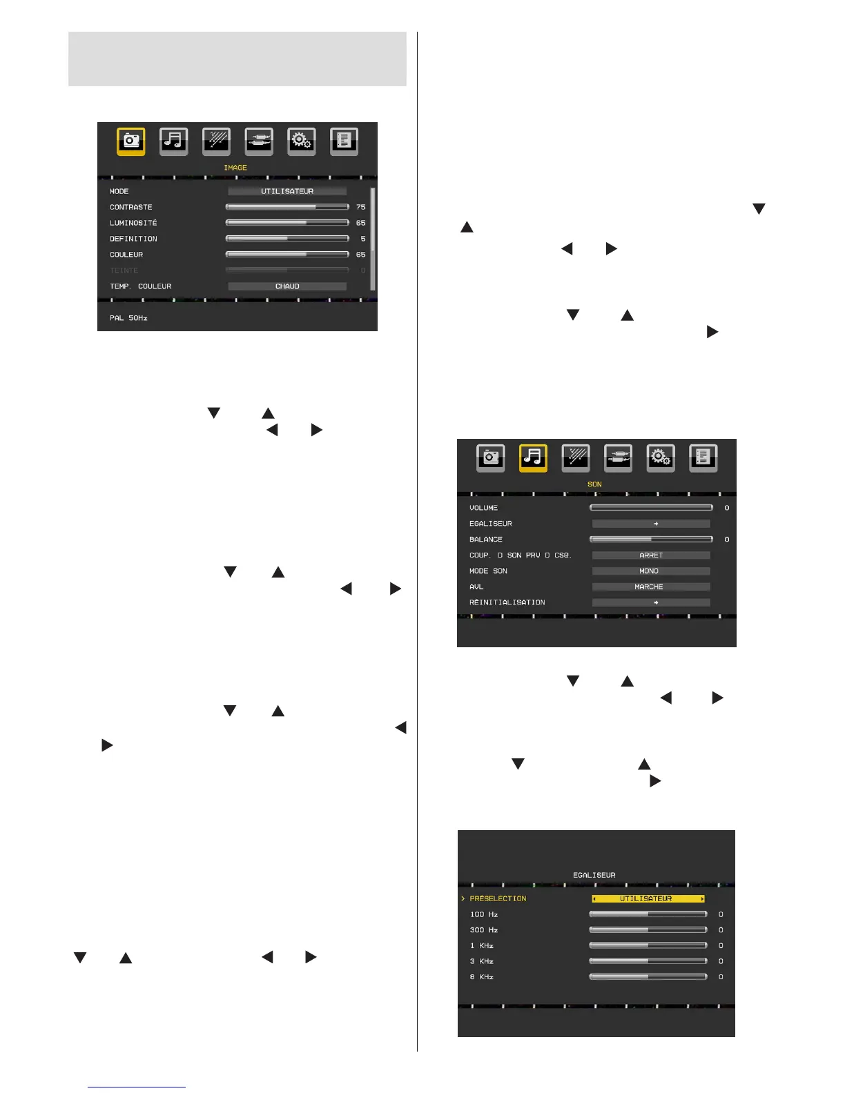 Égaliseur. Appuyez sur la touche “ ” pour afcher le