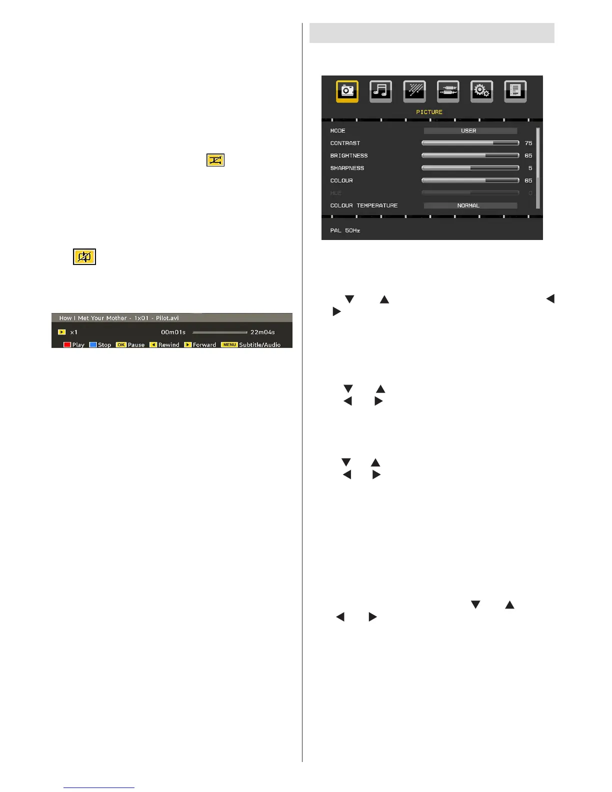 Also; Picture Mode, Contrast, Brightness, Sharpness,