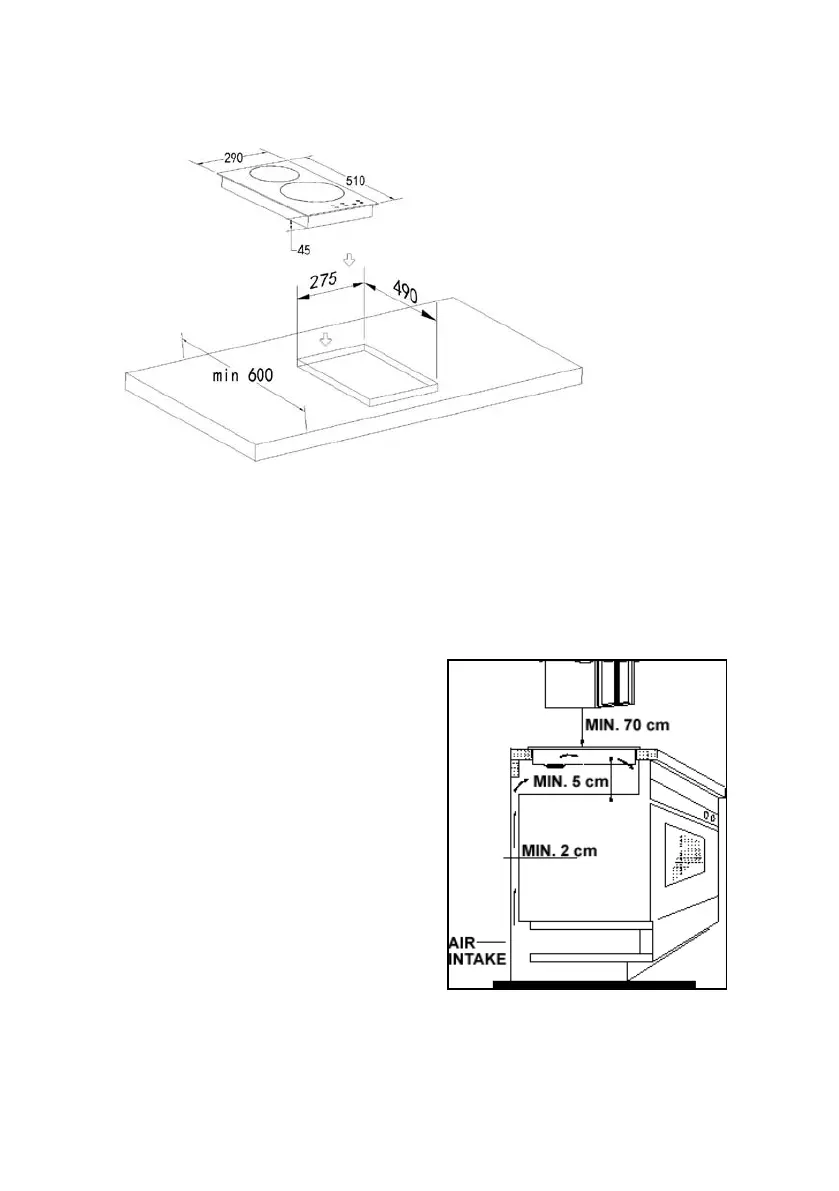 Découpez dans le plan de travail un trou tel qu'indiqué sur le schéma