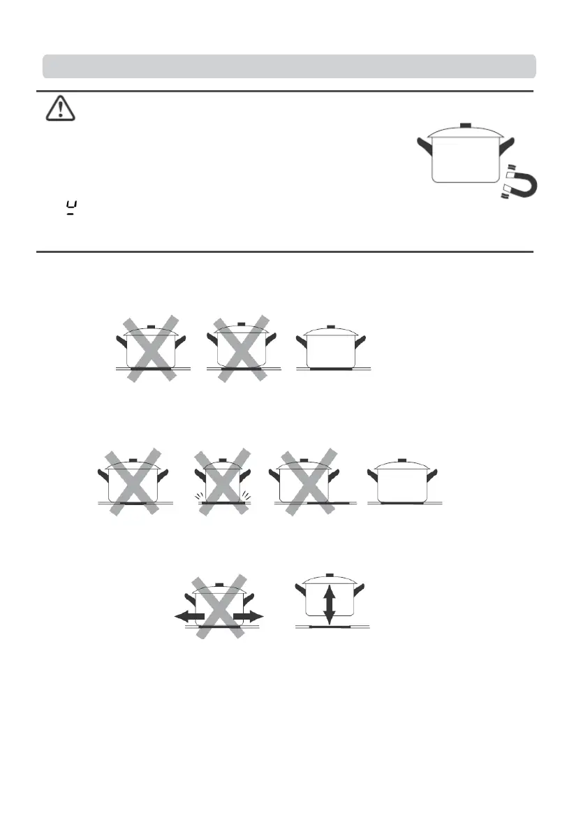 • Cookware made from the following materials is not suitable: pure stainless steel, aluminium or