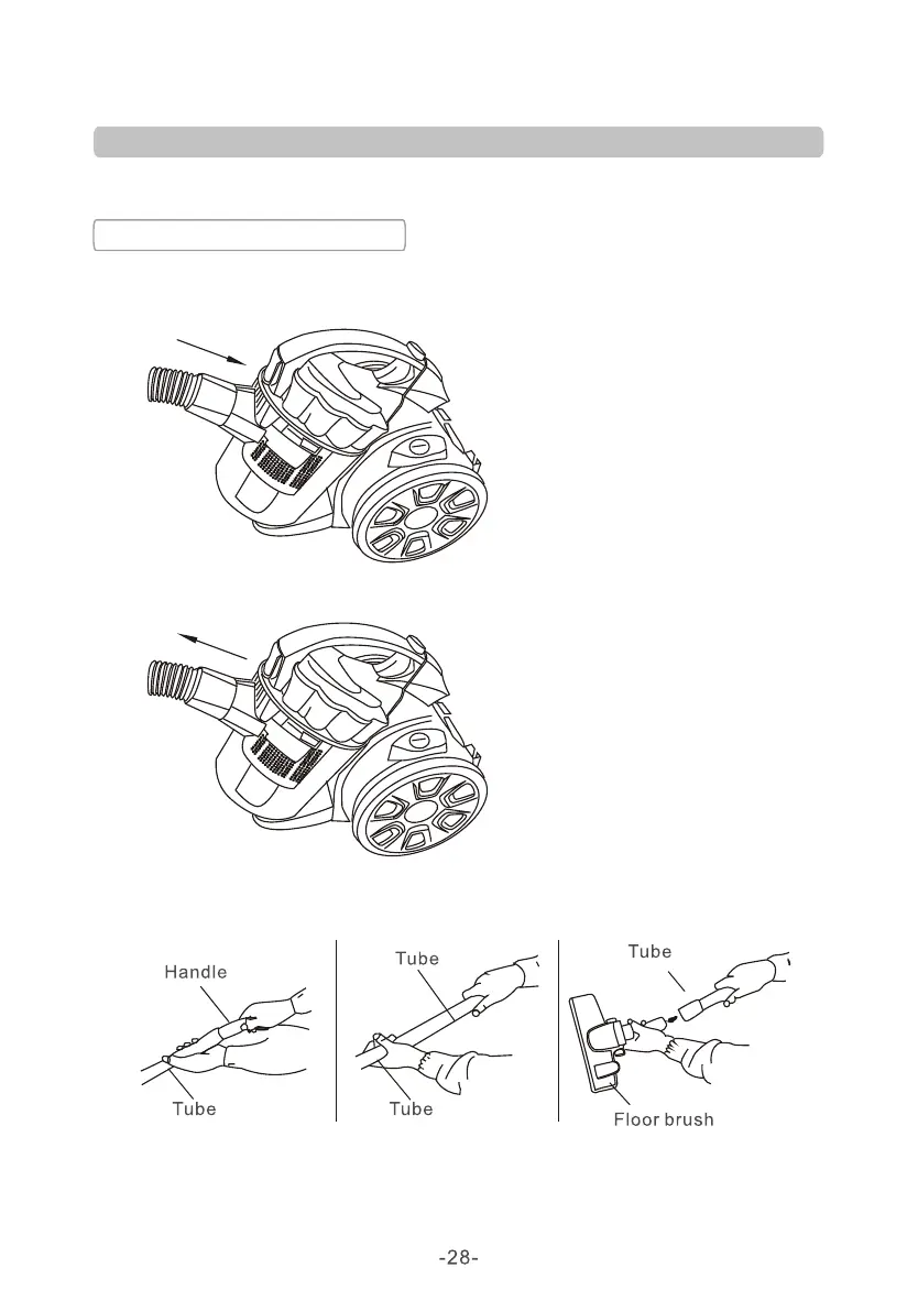 (3) Fit the extension tube to the handle, tube and tube to floor brush as