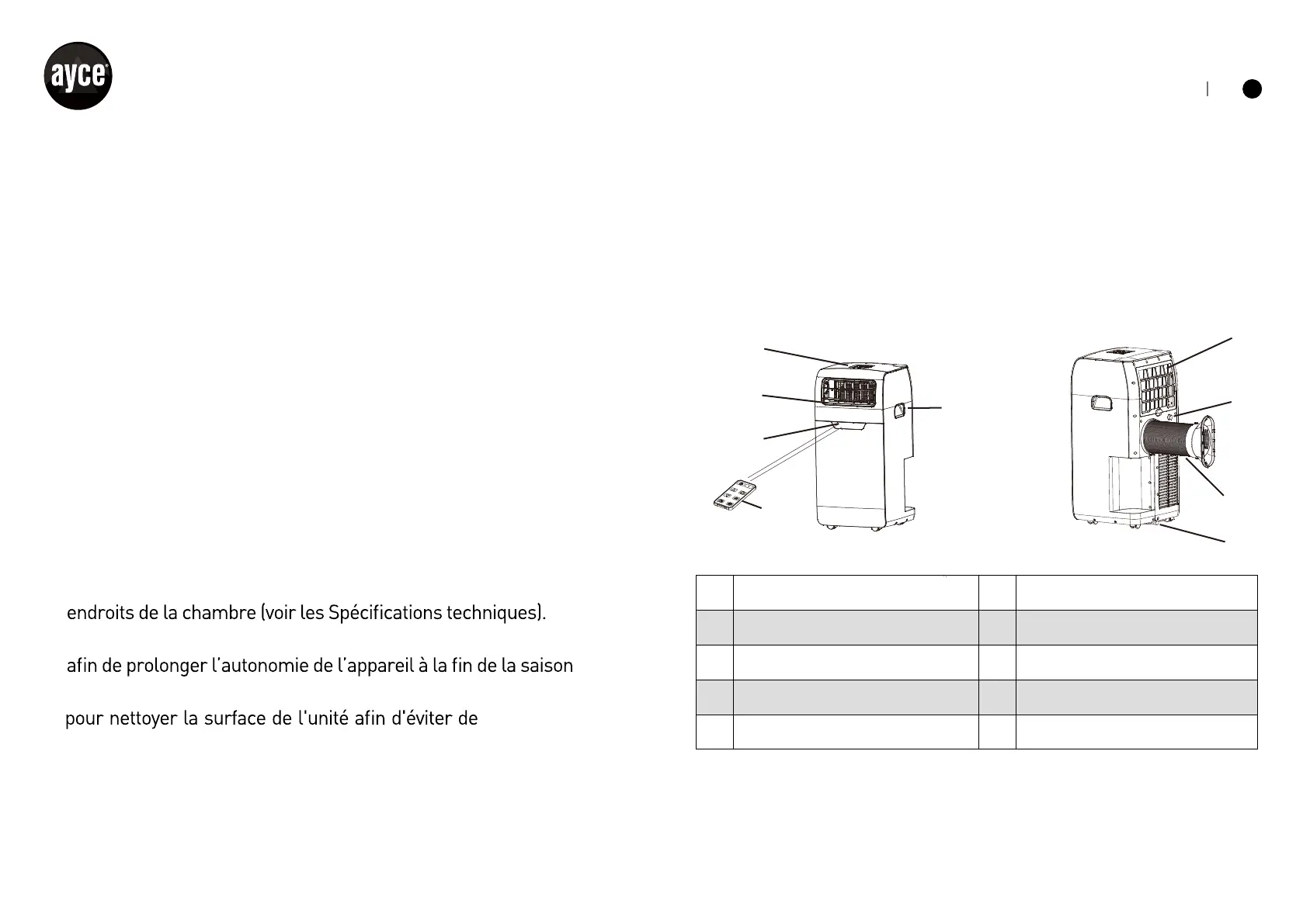 • Vider le bac de drainage de condensation avant de stocker l'unité
