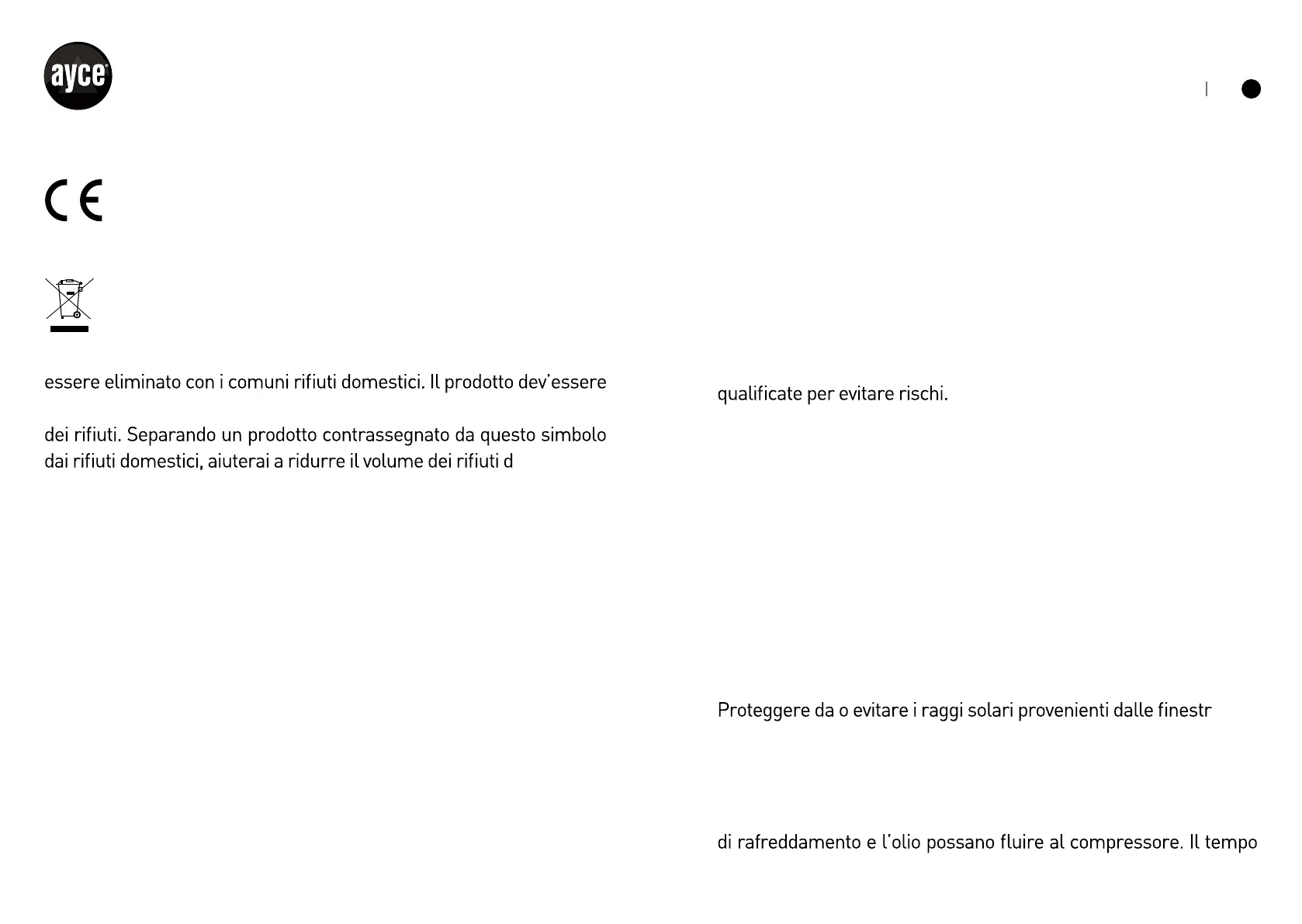 • Pulizia e manutenzione dell’utente non devono essere eseguite da