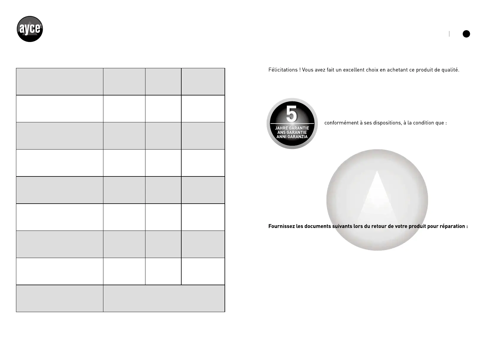 jour de son achat. Conservez votre reçu d’achat dans un endroit sûr, car il prouve la