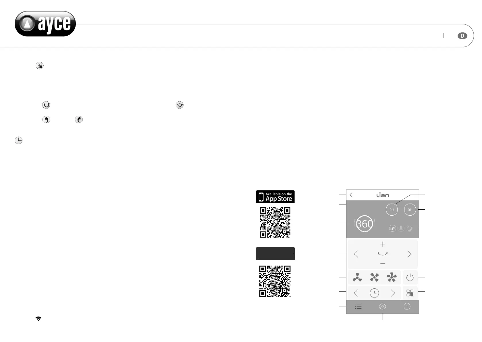 • Wenn der Lüfter über die App bedient wird, werden auf dem Gerät dieselben Funktionssym-