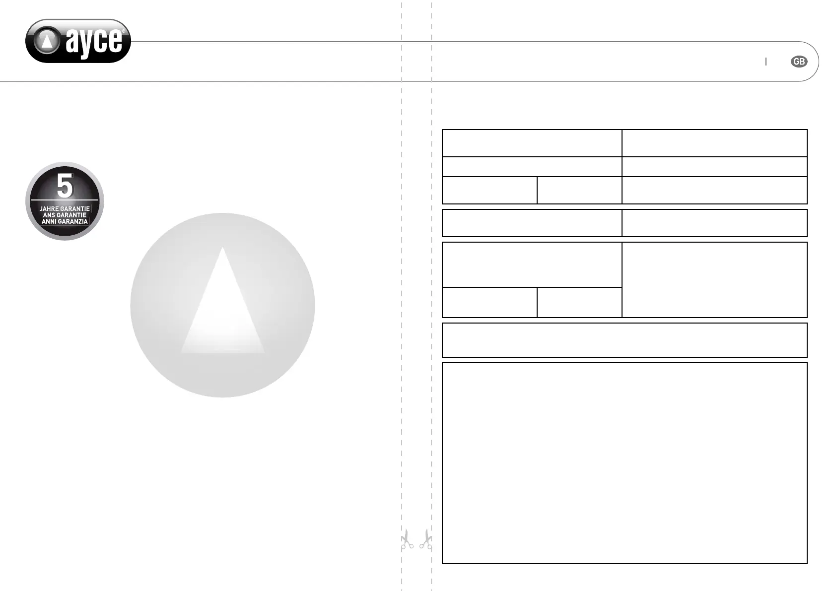Warranty (Please mark with a cross) Sales receipt number/date