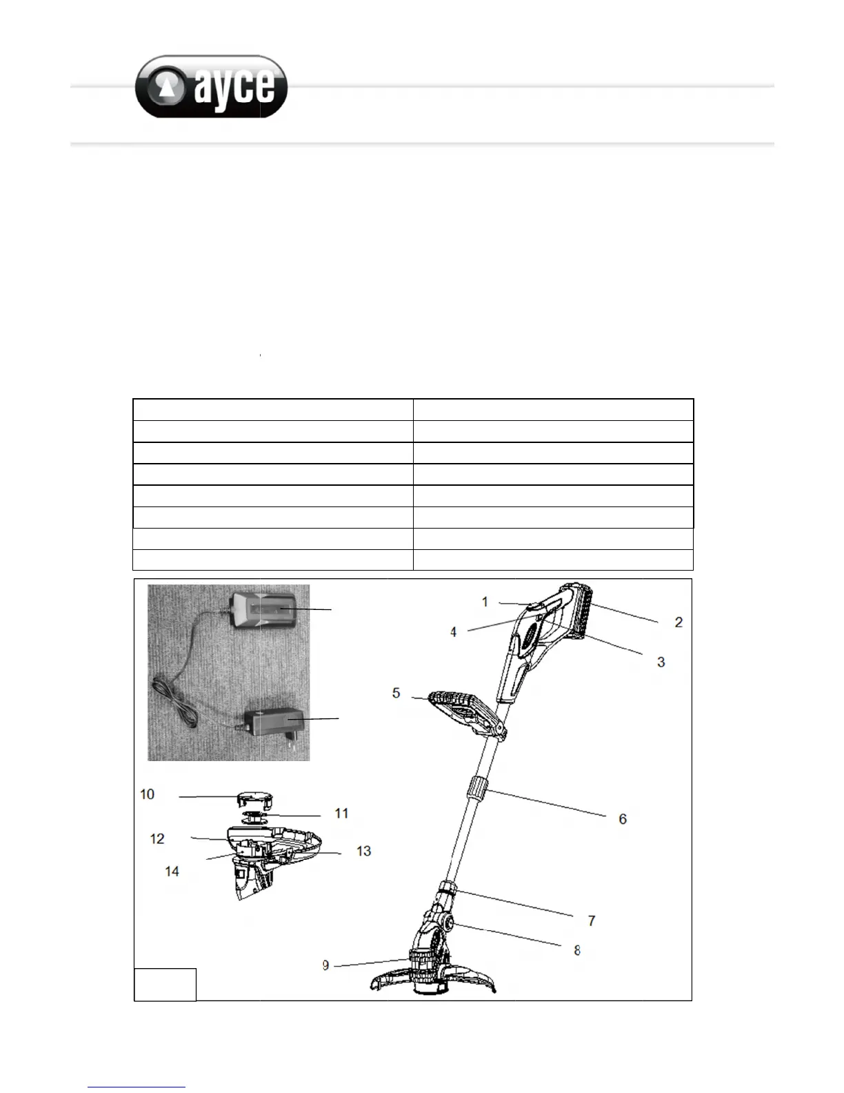 Ayce RTA30 - List of Main Parts