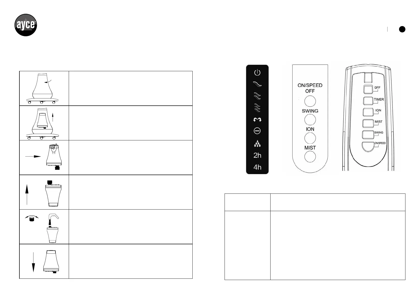 SPEGNIMENTO Premere questo pulsante per spegnere il ventilatore.