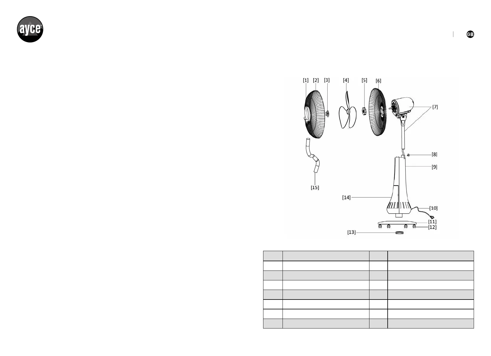 9 Fan Body 10 Power Cord