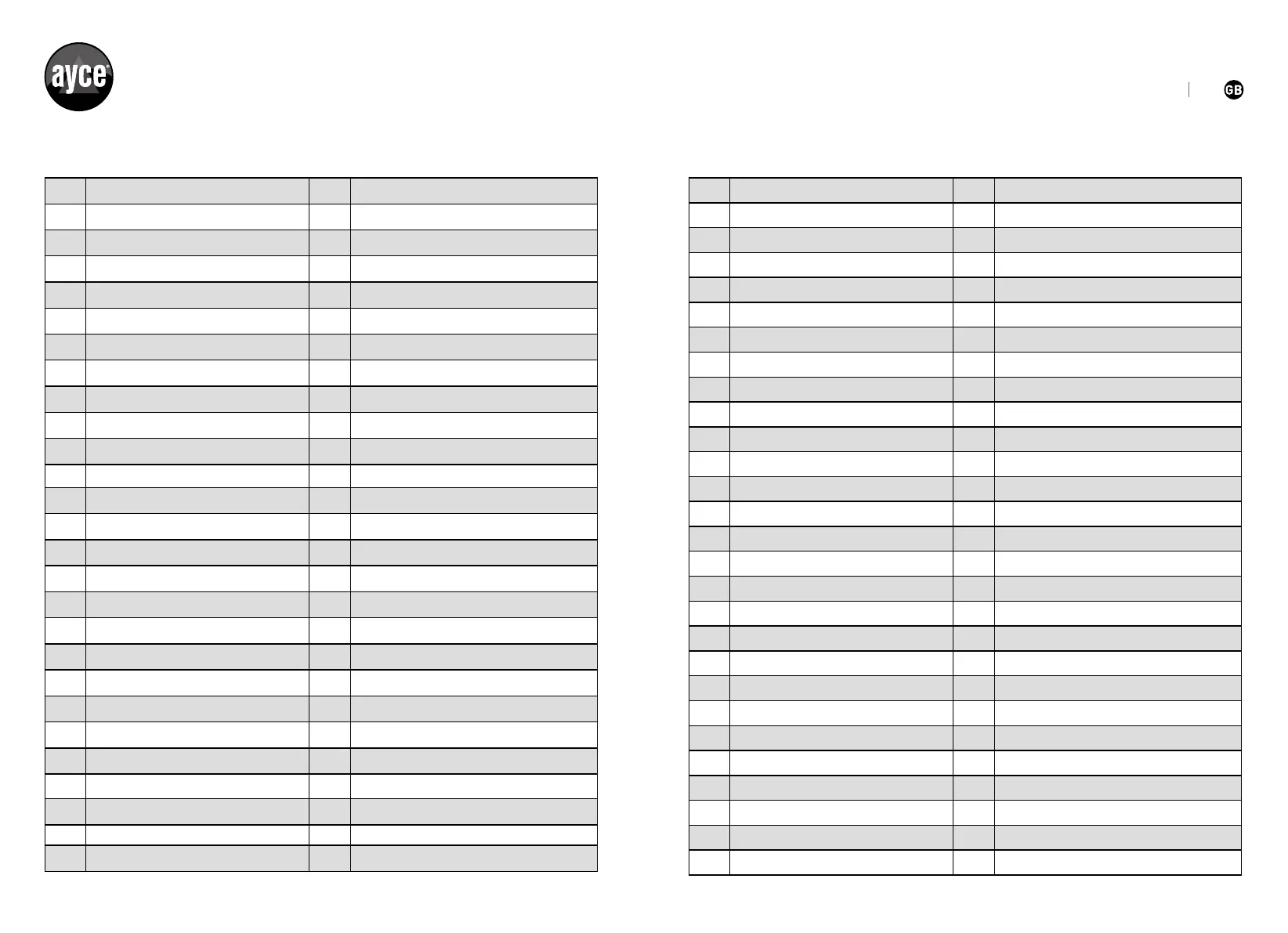 NO. DESCRIPTION NO. DESCRIPTION