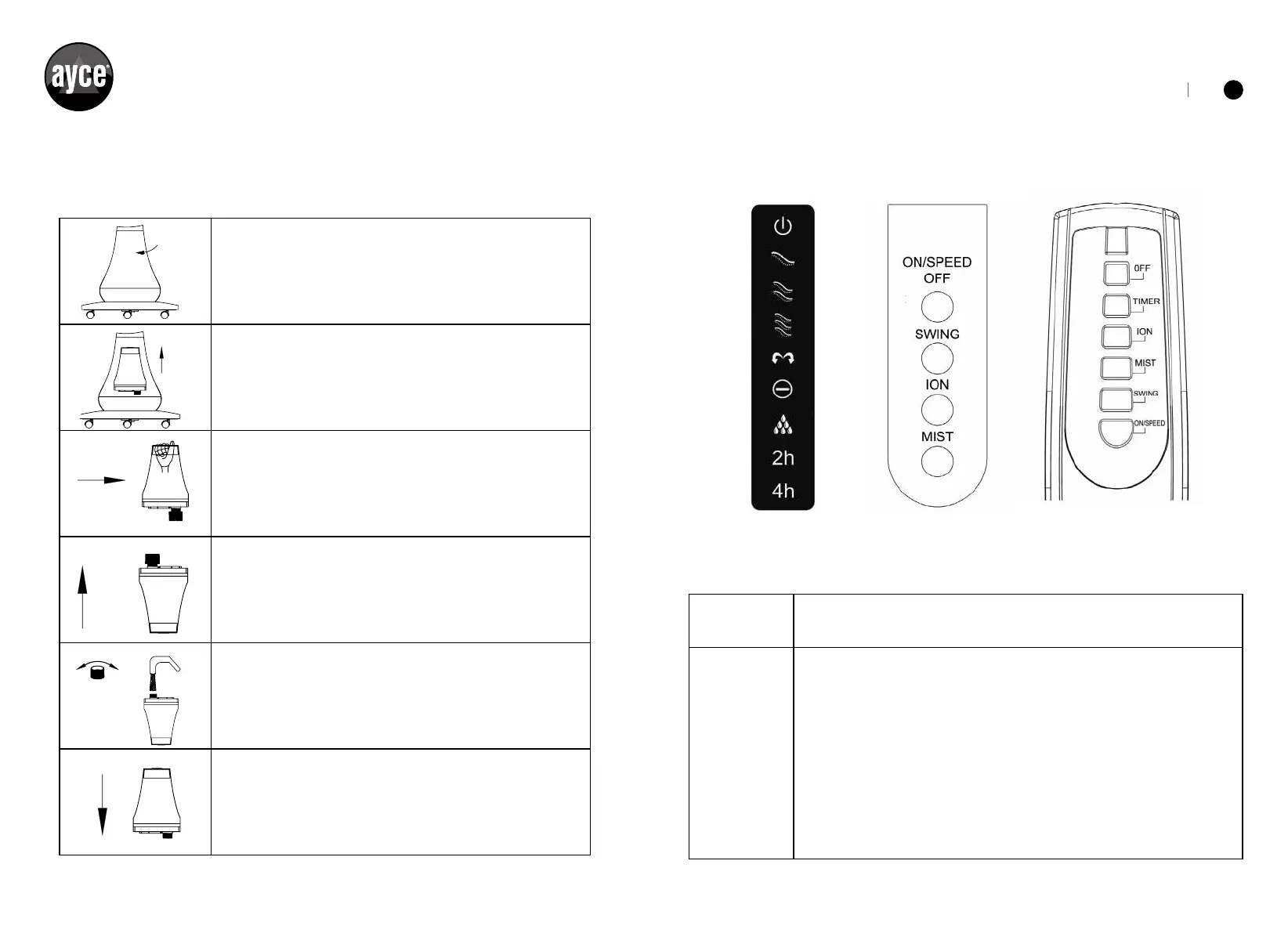 AUS Drücken Sie diese Taste, um den Ventilator abzuschalten.