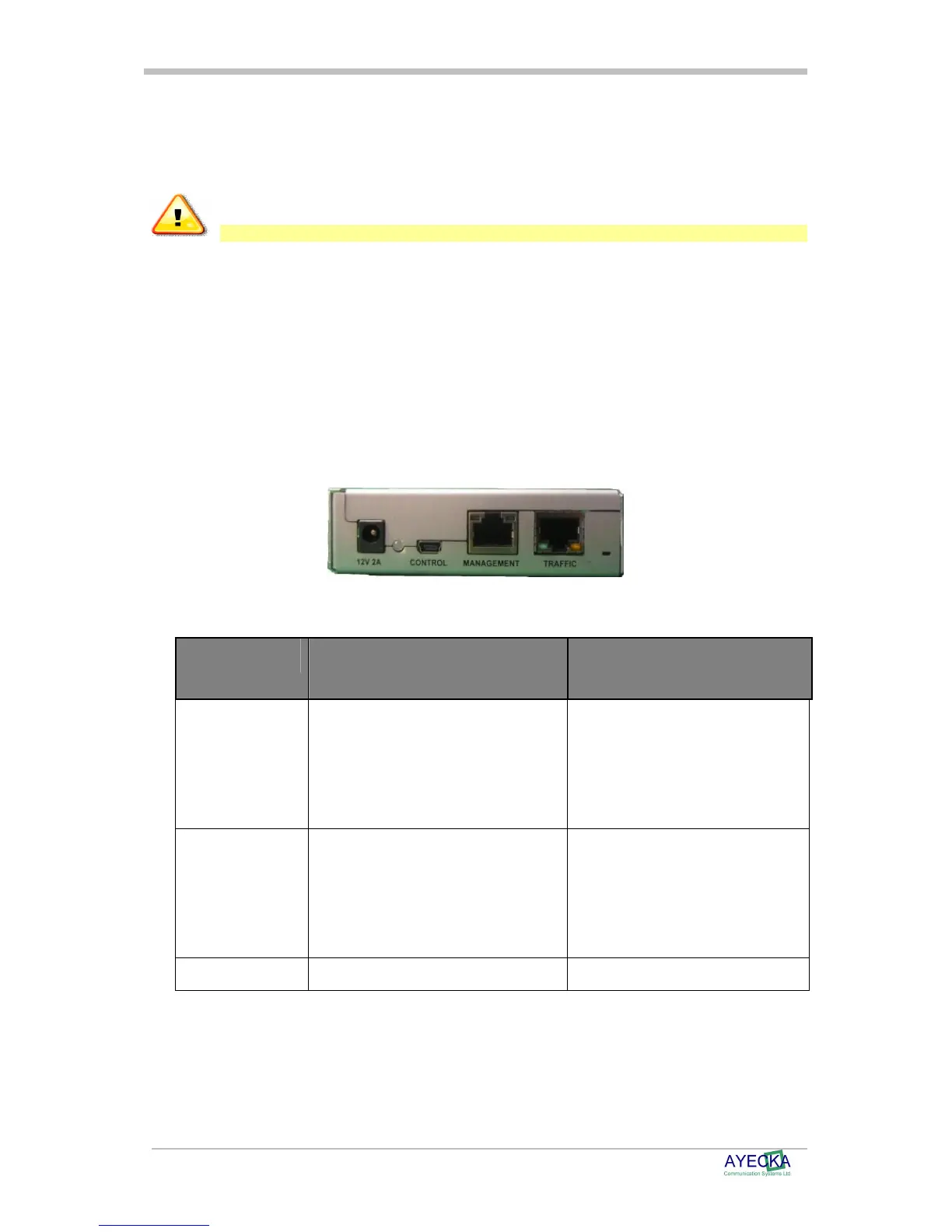 Always use power adaptor supplied by Ayecka.