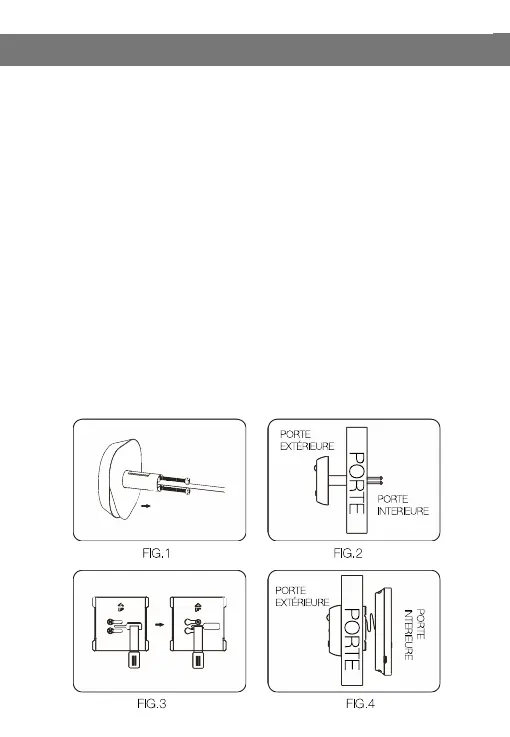 de la porte vers l'intérieur. Collez la caméra sur la porte avec l'adhésif.