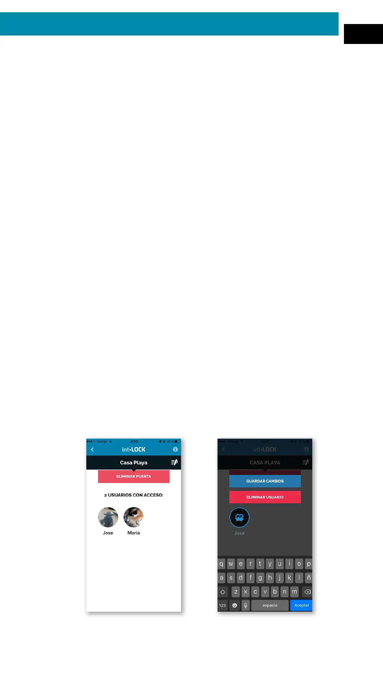 ministración de usuarios pudiendo eliminarlos de la cerradura a