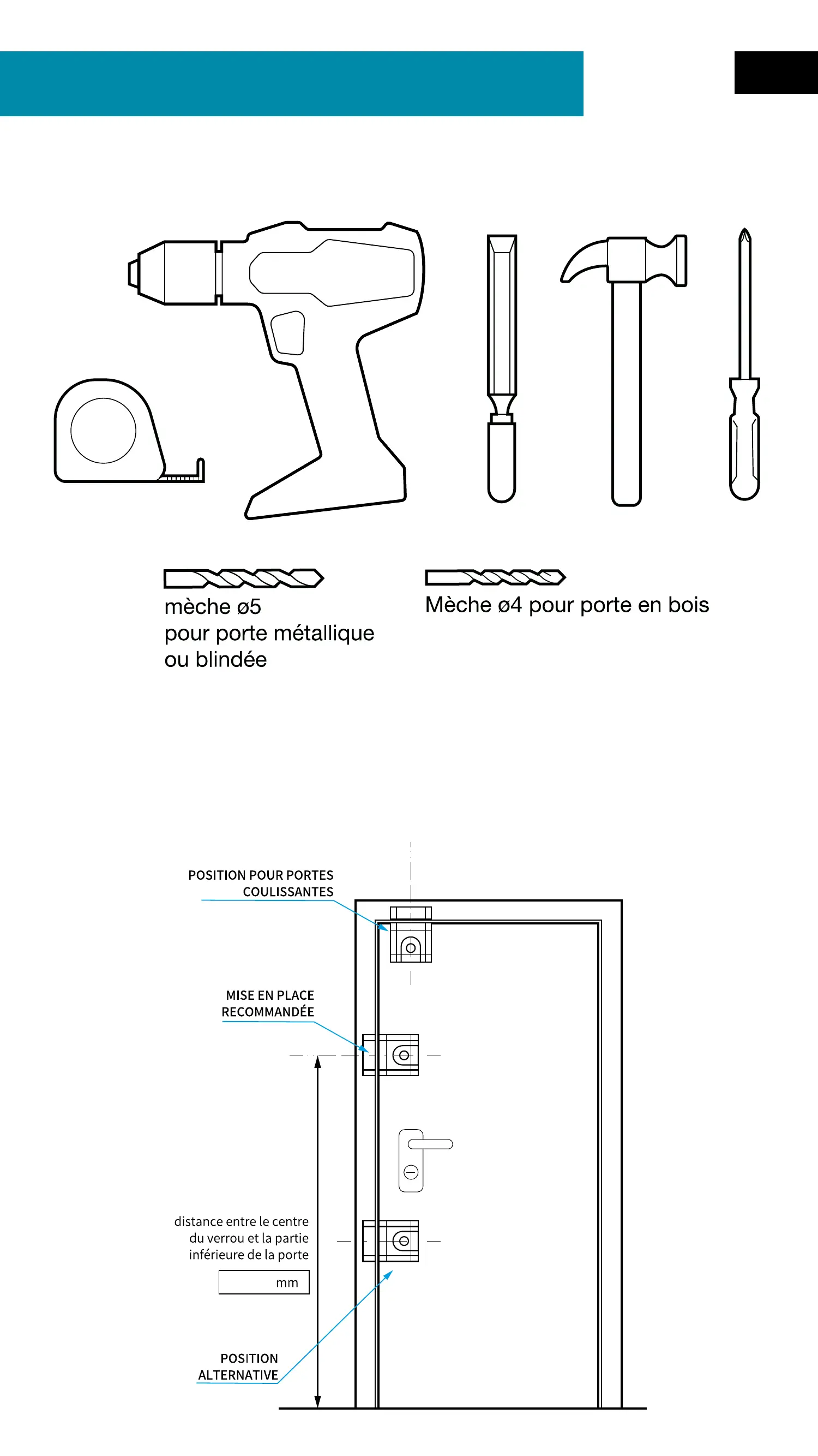 1 - termine la position optimale de la serrure sur la porte.