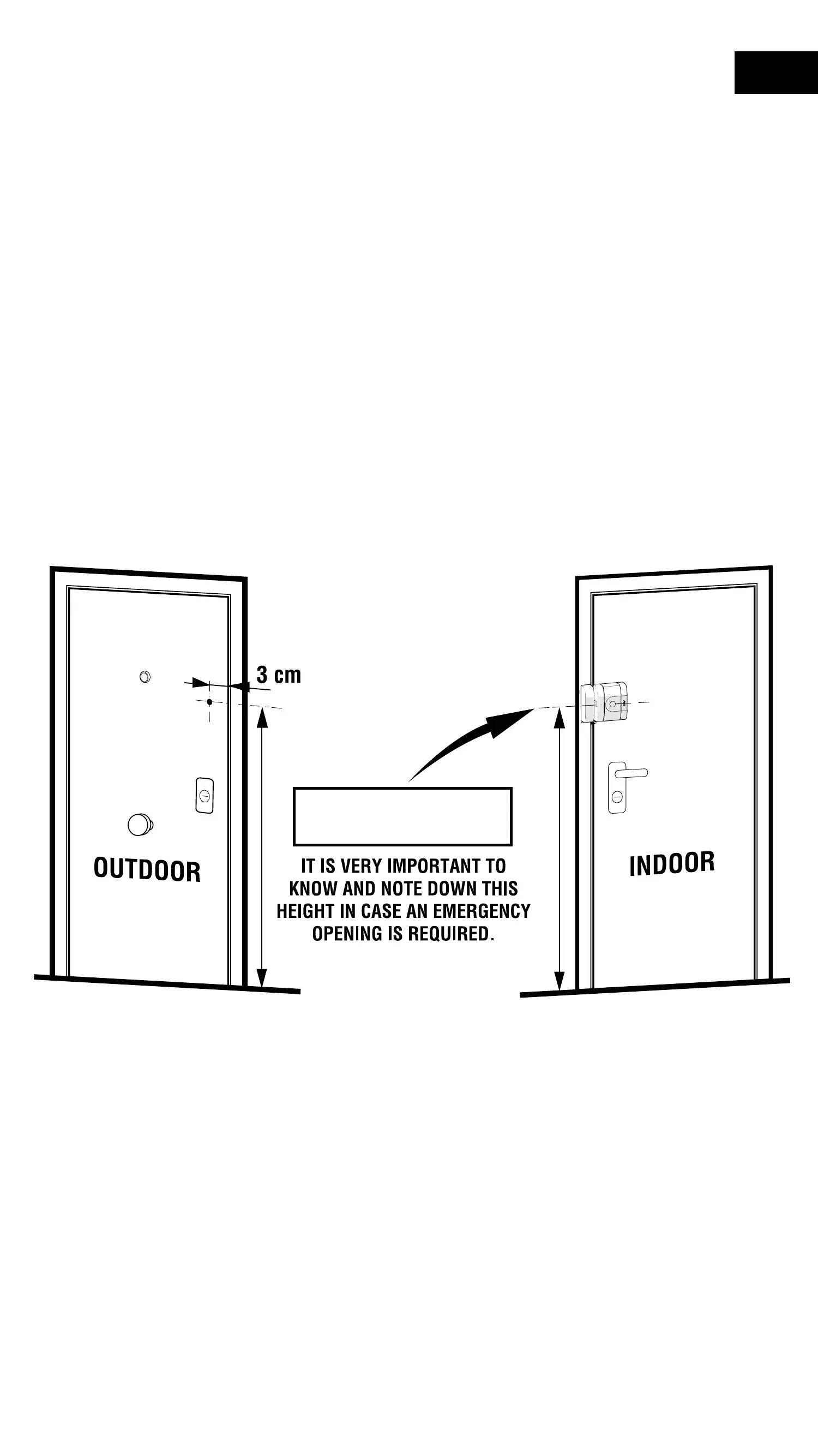 hauteur du centre de la serrure et à 3 cm du bord de la porte, ce