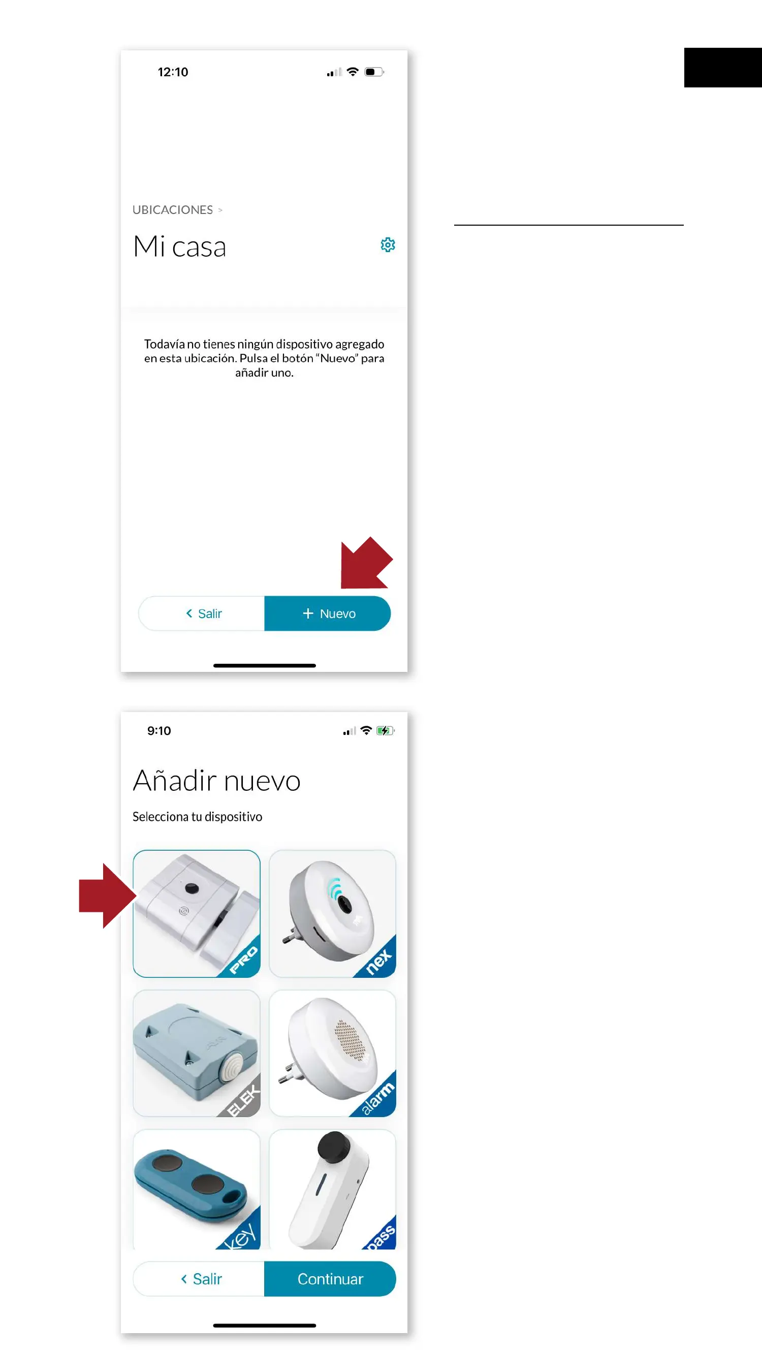 "+Nuevo" para añadir un