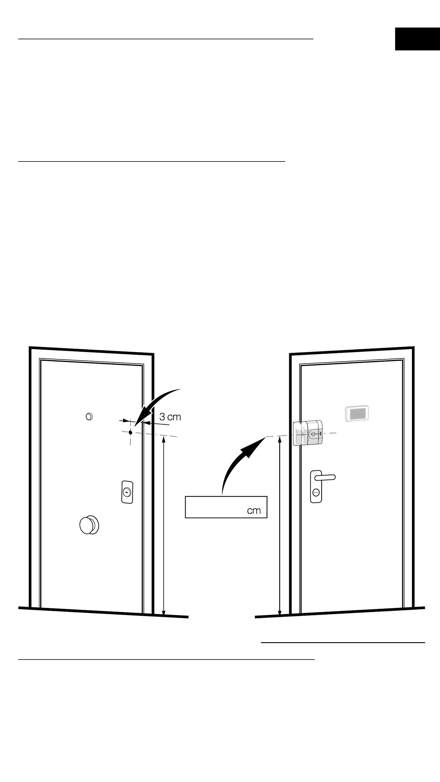 te exterior de la puerta a la altura del centro de la cerradura y a 3 cm