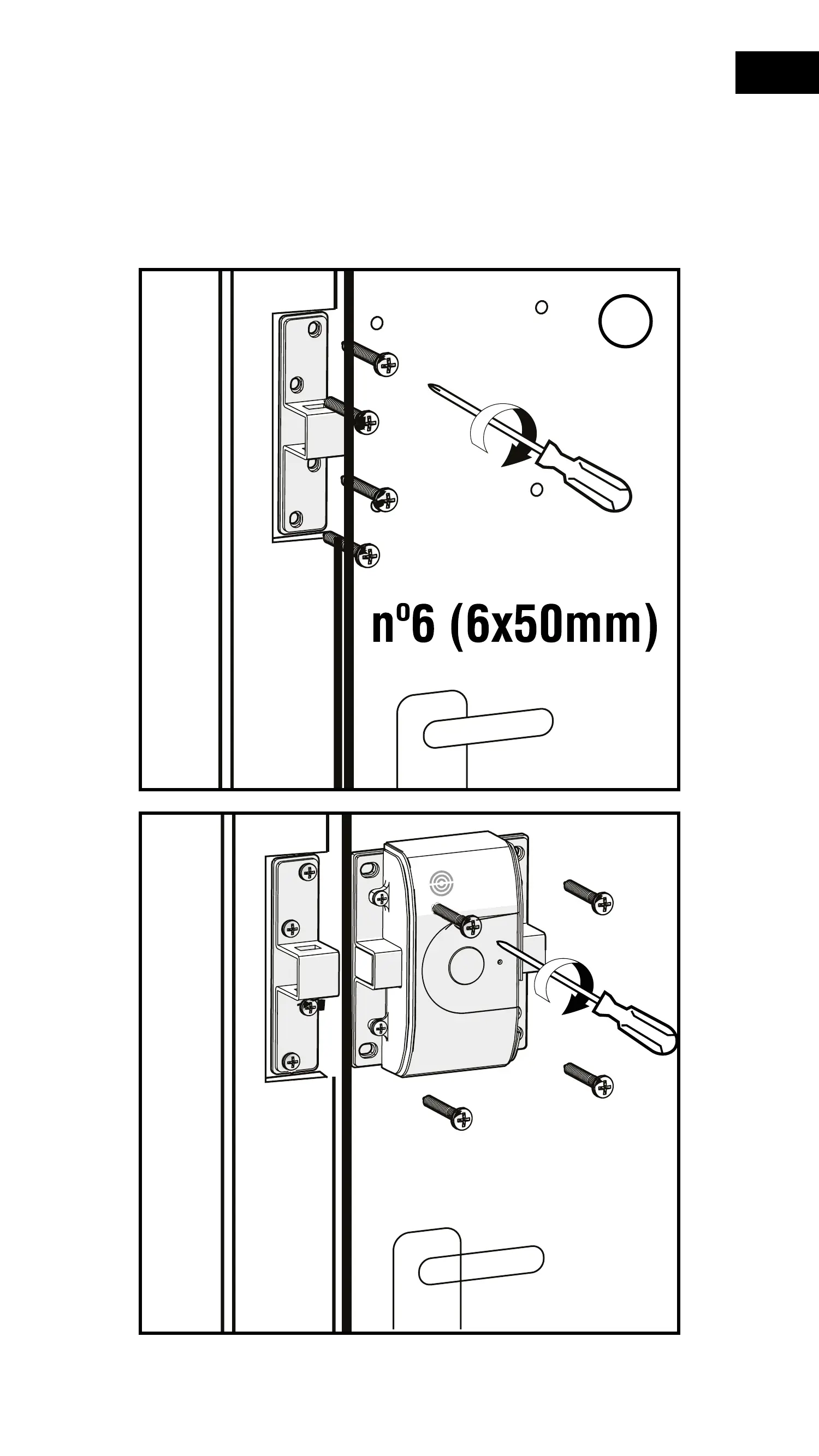 7- Les vis utilisées dans la serrure sont nº 5 (6 x 40 mm) et le