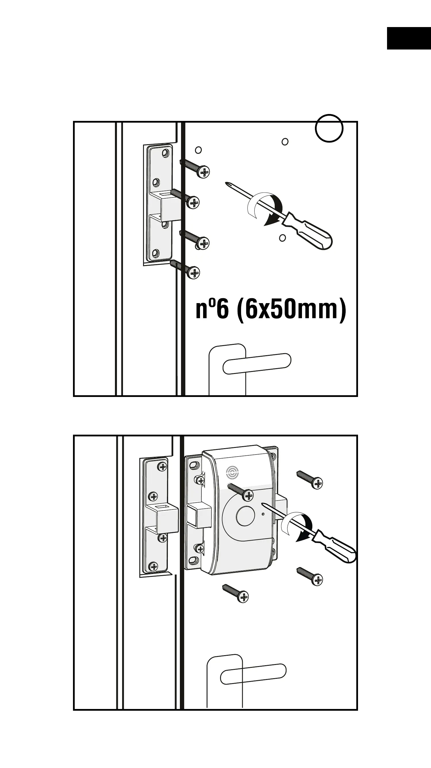 7- Los tornillos que utiliza la cerradura son el nº 5 (6 x 40 mm) y el