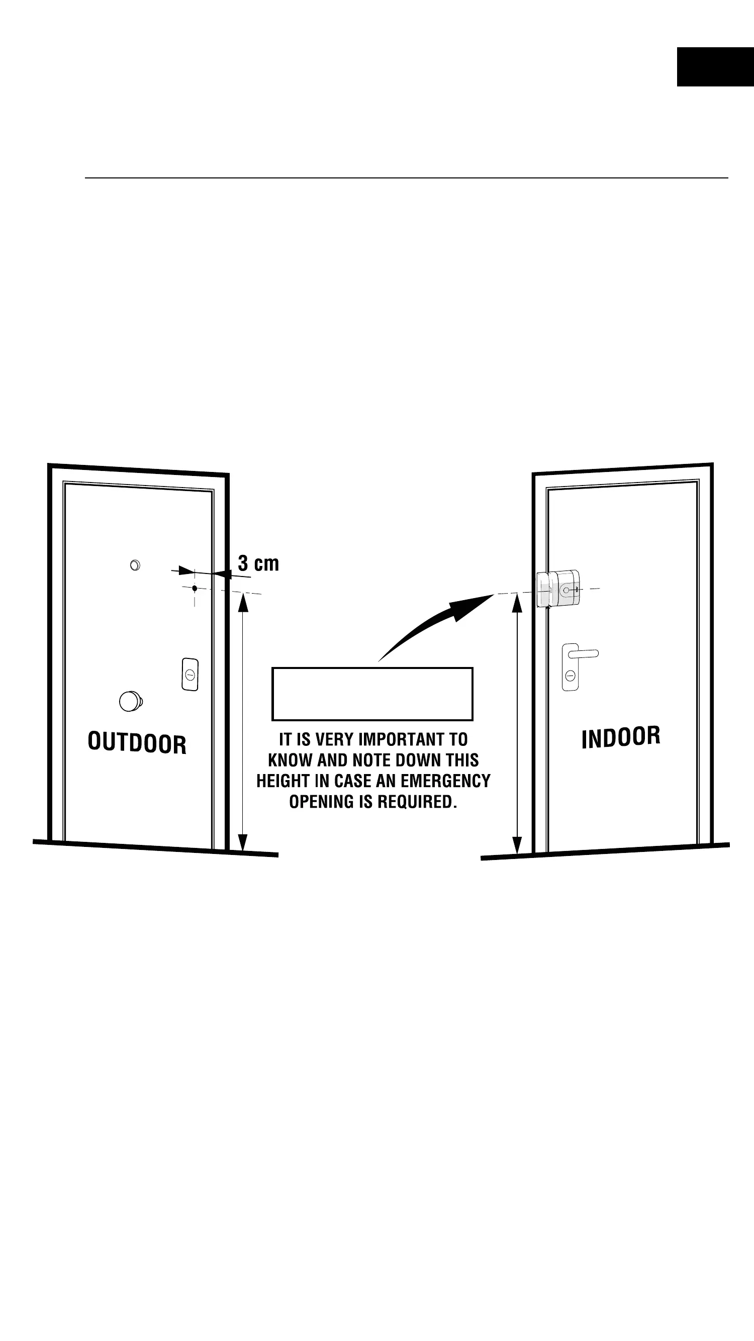 the centre of the lock and 3 cm from the edge of the door, allowing
