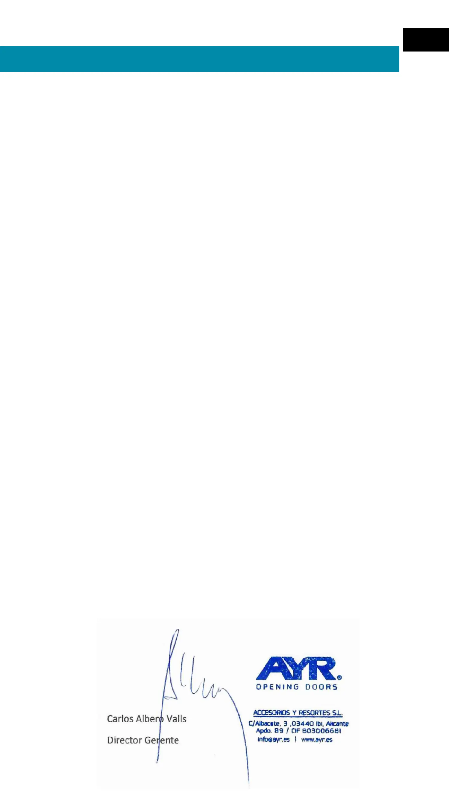 Manufacturer: AYR Accesorios y Resortes, S.L.