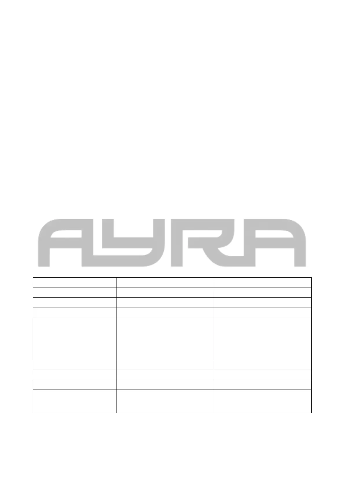 Specifications for each model