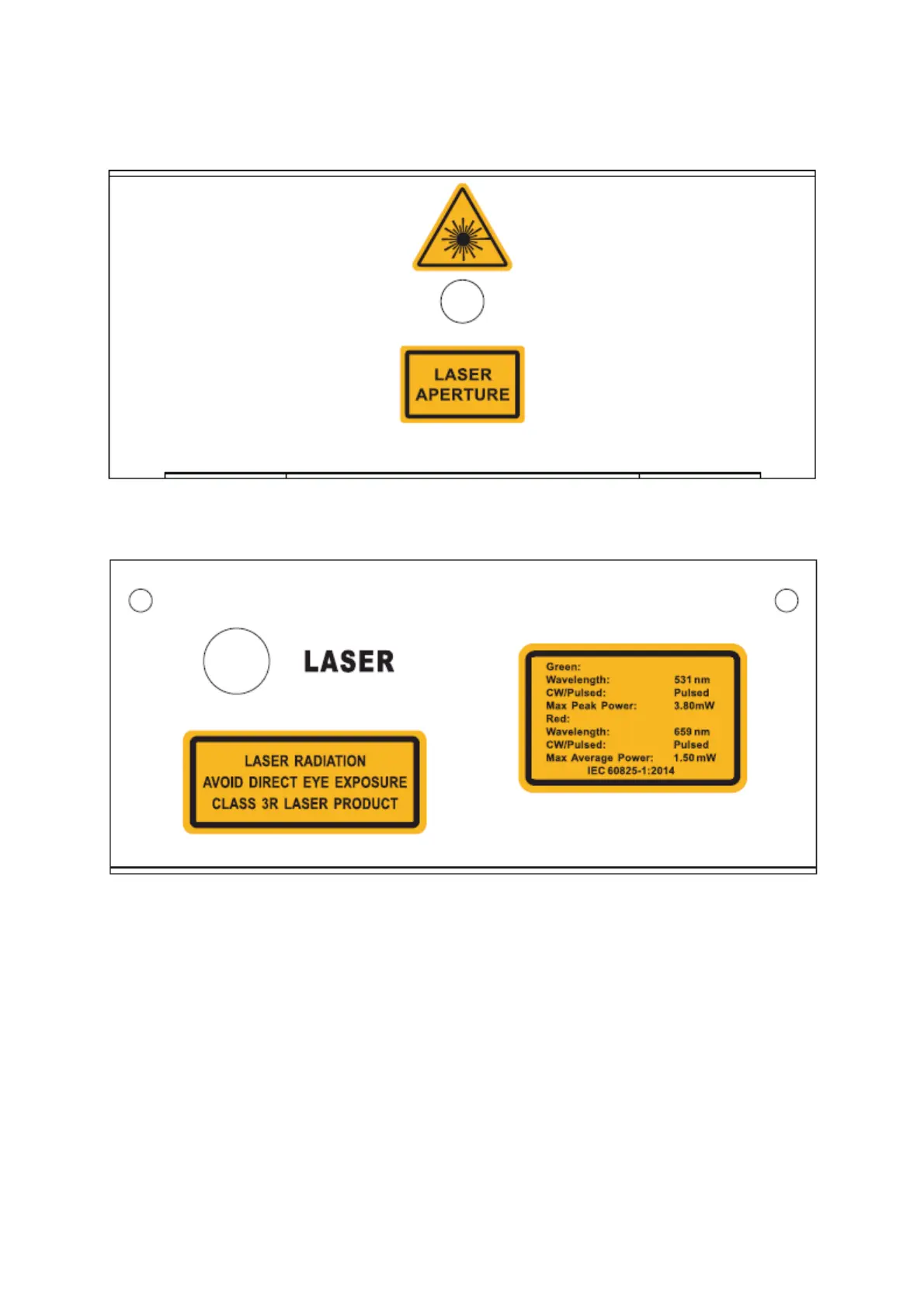 The laser unit has various warning labels attached to the front and back of its housing.
