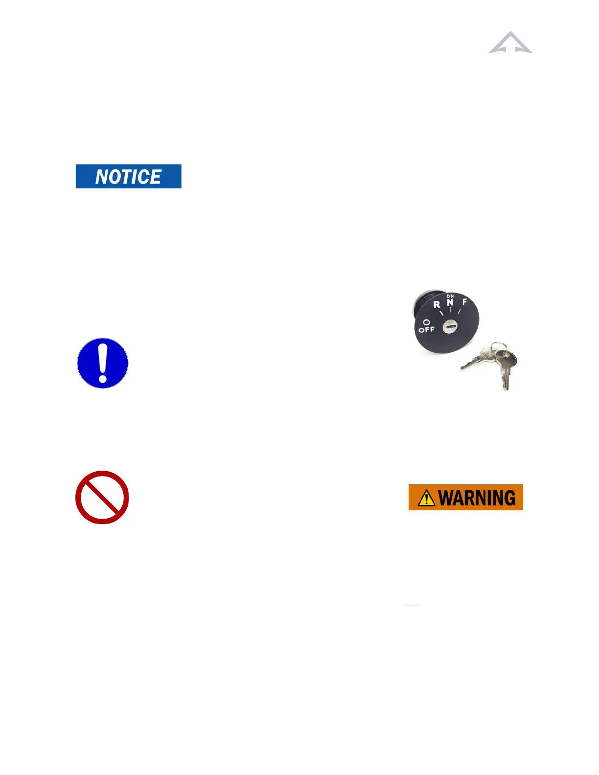 When the key is turned clockwise to the « N » (NEUTRAL/ON)
