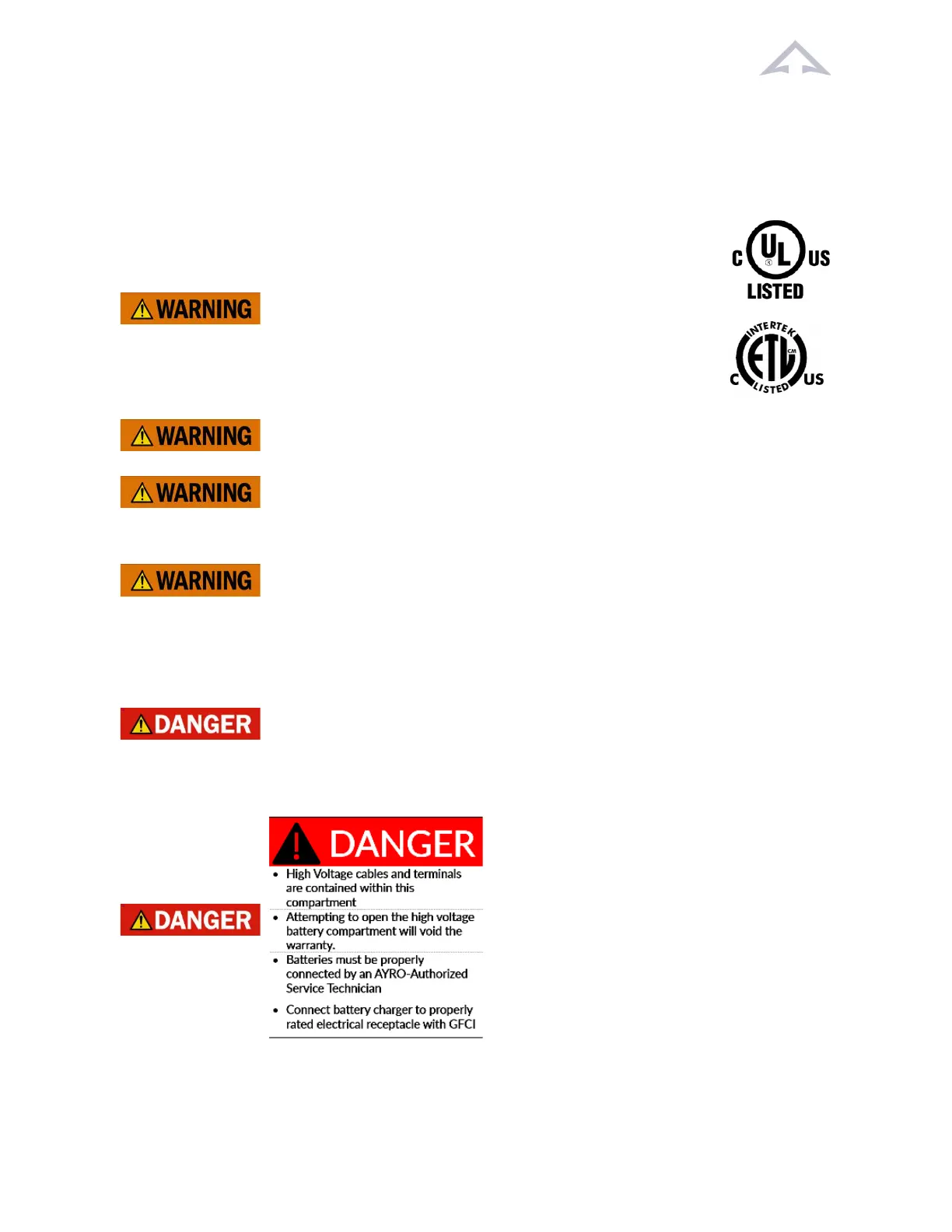 Please contact your authorized AYRO Dealer for service requirements