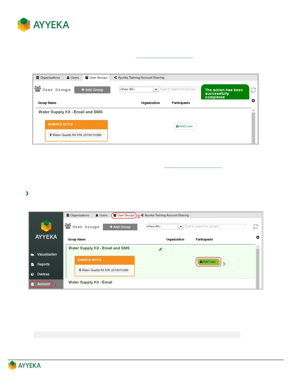 1. In the Account > User Groups tab, click Add User adjacent to the name of the group you created.