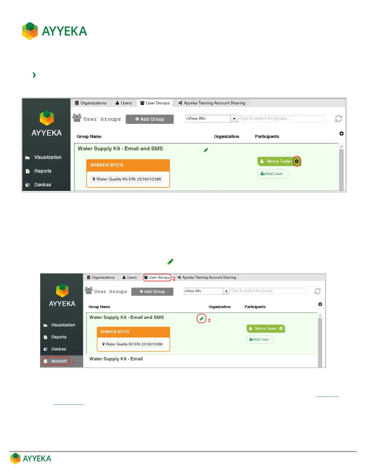 1. In the Account > User Groups tab, click the x to the right of the user name.